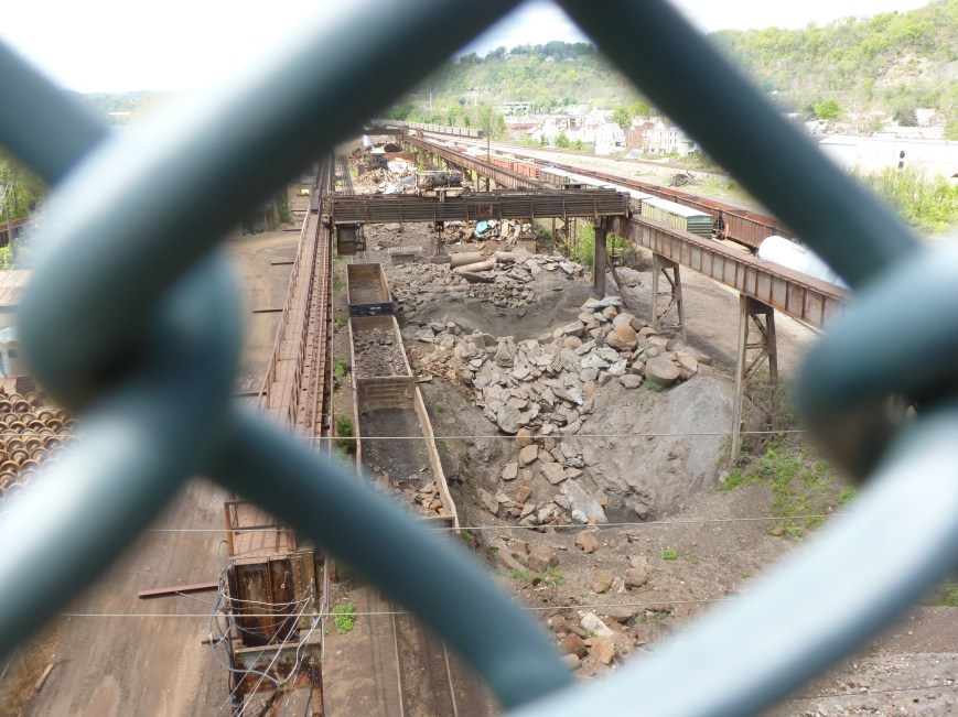 This is the second sight of interest is pictured above. If there was a place in Pittsburgh that would produce a comic book superhero, it would be here. The hole in the picture above often gets filled with rainwater that stagnates and on some occasions turns an eerie, neon-like green color–the perfect toxic dump to produce superpowers. I assume this site is some sort of scrap metal processing place. A search on Google did not come up with any satisfactory responses. One day when I walked past, a magnet was lifting up pieces and dropping them down repeatedly. Whatever the site is, it is one of the reminders of Pittsburgh’s nitty-gritty industrial past.