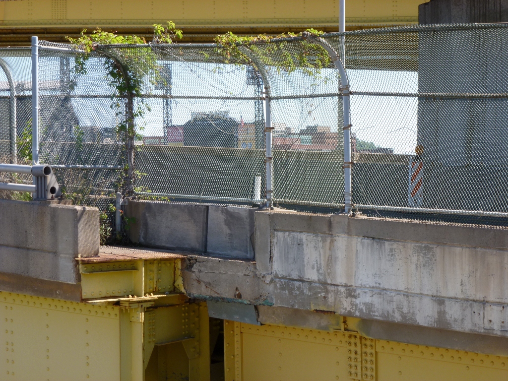 This suggested that at the time the bridge was built in the late 1950s and early 1960s, people were not quite as adverse to having pedestrians and interstates share infrastructure. However, this is evidence of the violence of the feelings against such an arrangement today. PGHbridges.com has a picture of this severely truncated sidewalk that includes a remnant of the staircase that used to lead to it. I do not believe that the staircase remnant exists any longer. When I saw the sidewalk to nowhere I looked around for some sign of where it used to go and did not find any, but I cannot remember if I looked down. I have walked around the part of Point State Park near where the staircase would have been several times and never noticed any steps. I will look carefully the next time I am there to make sure they have been completely removed.