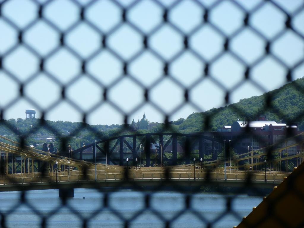 For those who may not want to walk the 6th Street Bridge (click to view June 14th’s post) to get from downtown Pittsburgh to a Steelers or Pitt football game, the Fort Duquesne Bridge provides a pleasant alternative. As the picture above indicates, the sidewalk is not directly connected to the bridge for most of the way. The walkway starts from a pleasant path through Point State Park (which means crossing the Bridge Under a Bridge, June 15th’s post) and ends on the North Side about halfway between PNC Park and Heinz Field.