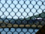 There is a nice view downriver from this bridge. Several famous Pittsburgh sites are included in the view: the Point, the Duquesne Incline, and Heinz Field. Other sites of interest in this view are the Carnegie Science Center, the West End Bridge, and the remnant of a former bridge across the Allegheny. The view upriver is partially obstructed by the wire mesh fence along the interstate bridge. I did get a couple of shots that you can mostly make out what is there. One shows downtown Pittsburgh and the other shows the bridges upriver including the Three Sisters (see June 14th, June 21, and June 22 post) and a railroad bridge. There is an item of interest I want to point out in this second view: just about in the middle of the frame, the domes of the Immaculate Heart of Mary Catholic Church on Polish Hill. This is one of my favorite buildings in Pittsburgh, because of its unique green domes that are a significant landmark visible for miles up and down the Allegheny River.