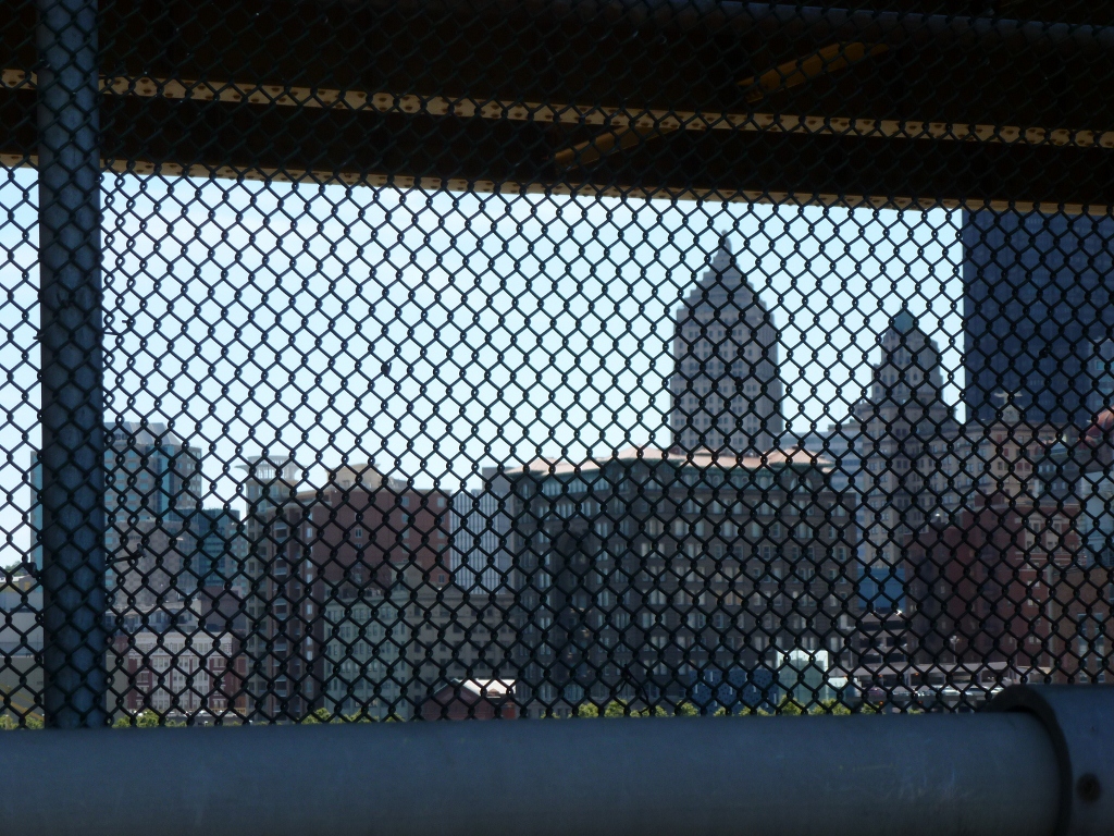 I have to add that I chose the name for this post (A Sidewalk to Nowhere) before I was aware that the Fort Duquesne Bridge’s nickname is “The Bridge to Nowhere.” While the pedestrian bridge attachment connects two points, the Bridge itself does not directly connect any points of interest. Instead it ferries cars from one interstate to another. The north end of the bridge continues onto elevated ramps in between various highways and freeways. The south end connects seamlessly to the Fort Pitt Bridge and Tunnels by way of the Portal Bridge (mentioned in June 15th’s post) and though there is also some access to downtown it is directed to the roadways along the rivers that permit cars to bypass downtown.
