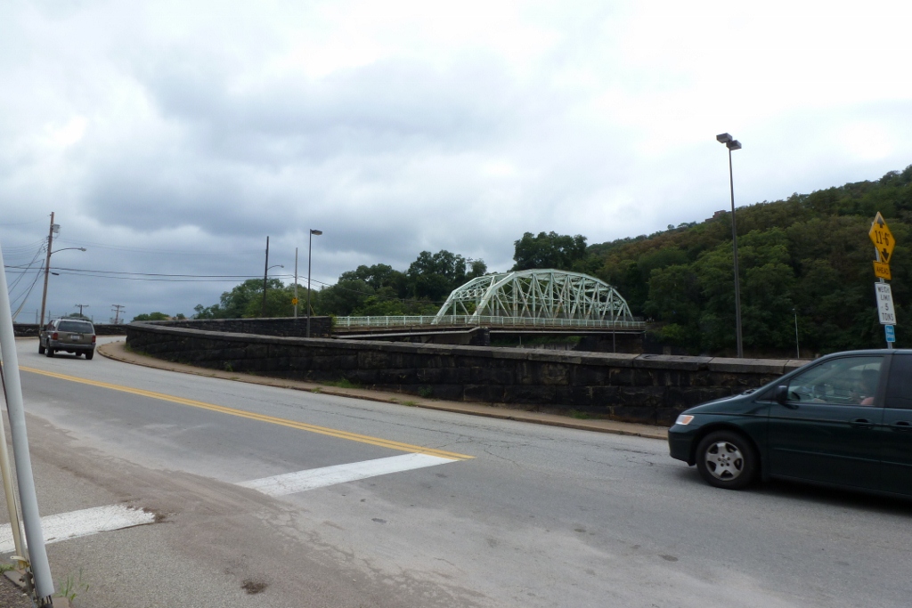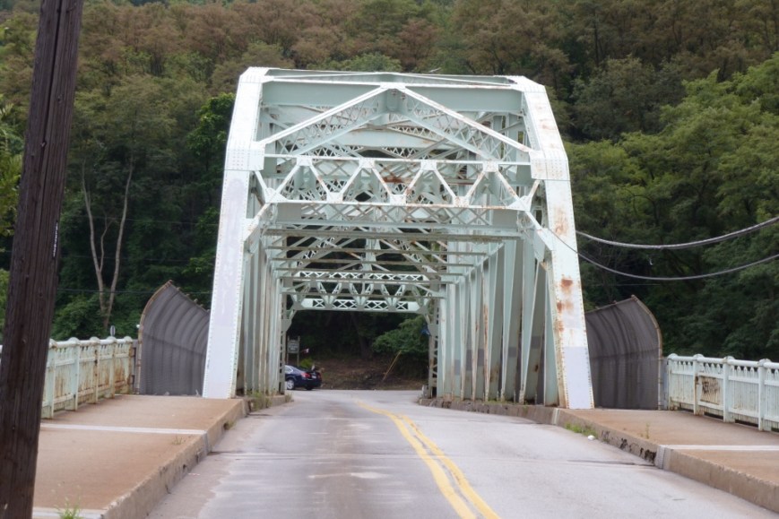Earlier this summer, when I was talking with someone about my project to walk the bridges of Pittsburgh, he asked me which bridge was my favorite so far. I hadn’t thought about it before, but when he asked, I decided that the Heth’s Run Bridge was my favorite because its design and its existence called up many questions (see May 31 and June 9 posts). Now I would say that the 28th Street Bridge is my favorite, despite the fact that it is rusting, the sidewalk is crumbling, and it has the cage-like fence I generally dislike. I think the bridge is rather cute (if a bridge can be called cute)….Or perhaps I like it so much because it has a stone-lined approach. I love stone.