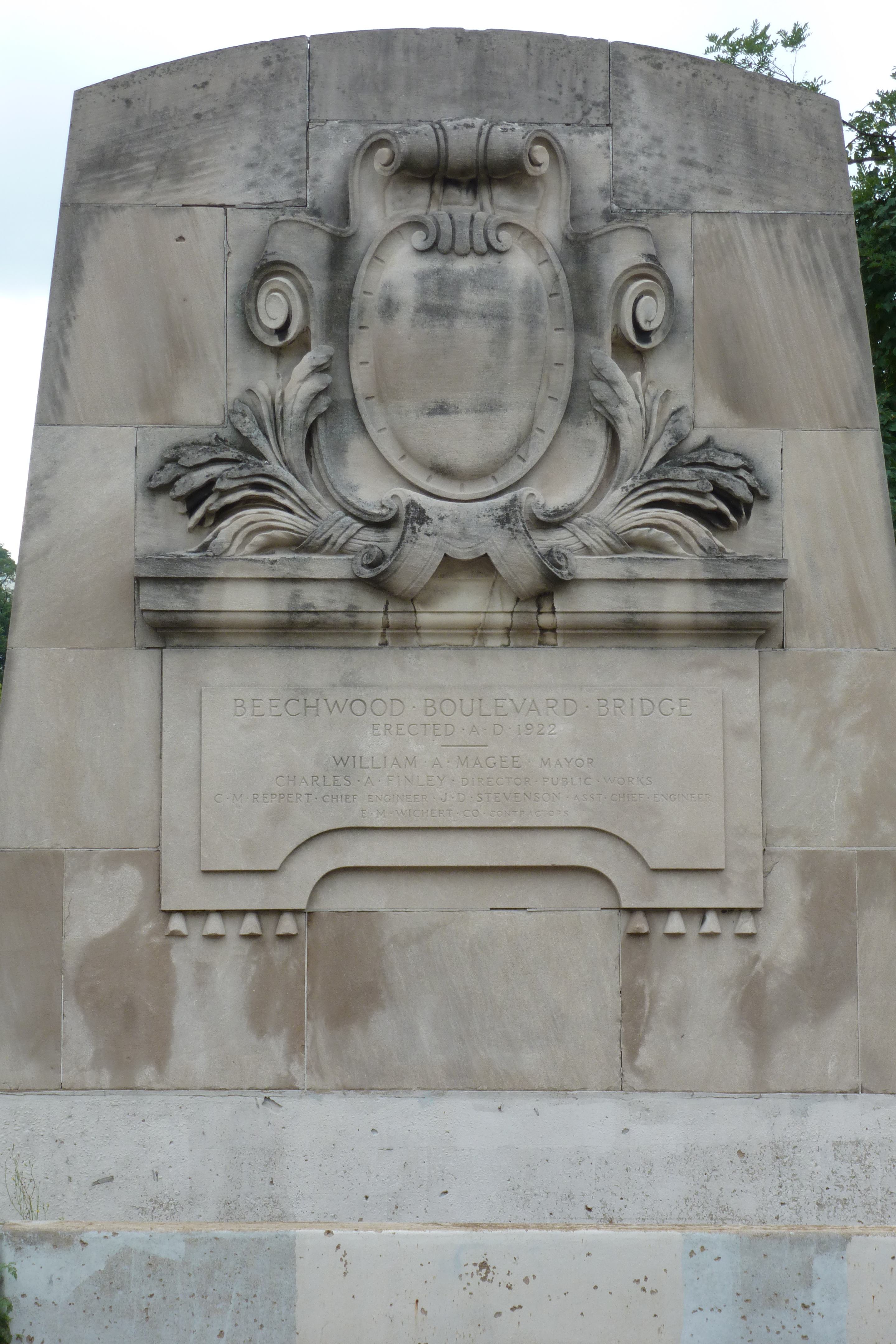 The Greenfield Bridge, formerly known as the Beechwood Boulevard Bridge, was originally built in 1922, demolished in 2015, rebuilt in 2017, and repaired in 2020. It was a classic case of waiting until the bridge was falling down before replacing it. To increase the lifespan of the original bridge, a second bridge was built underneath, and a net installed as early as the late 1980s to protect cars on the freeway below from the falling debris.
