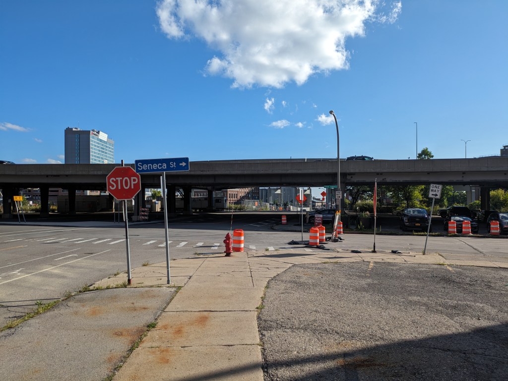 Before making an official urbantraipsing trip to Buffalo, I had encountered the freeways around the city multiple times. The flying roadway carrying Route 5 that starts near downtown and travels over a sizable portion of the industrial area along the waterfront is a memorable piece of infrastructure. And one that I had assumed would contribute to the cutting off of the waterfront from the city.