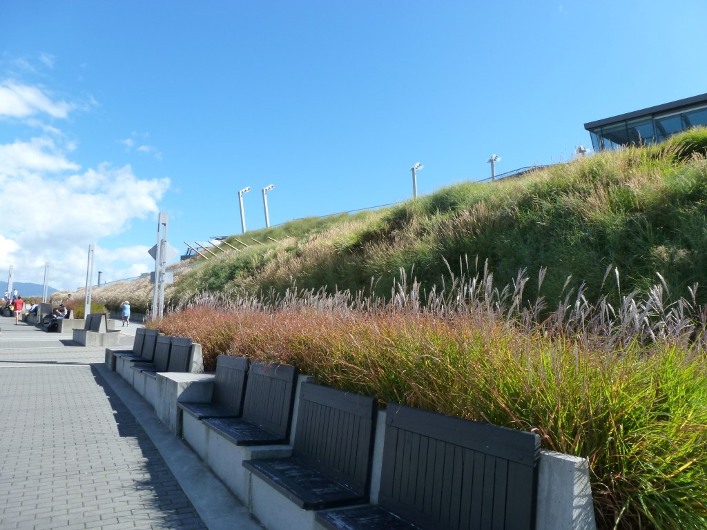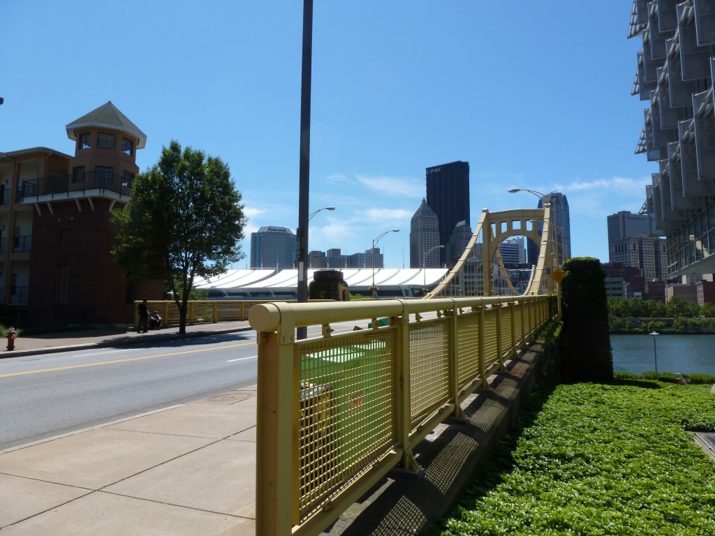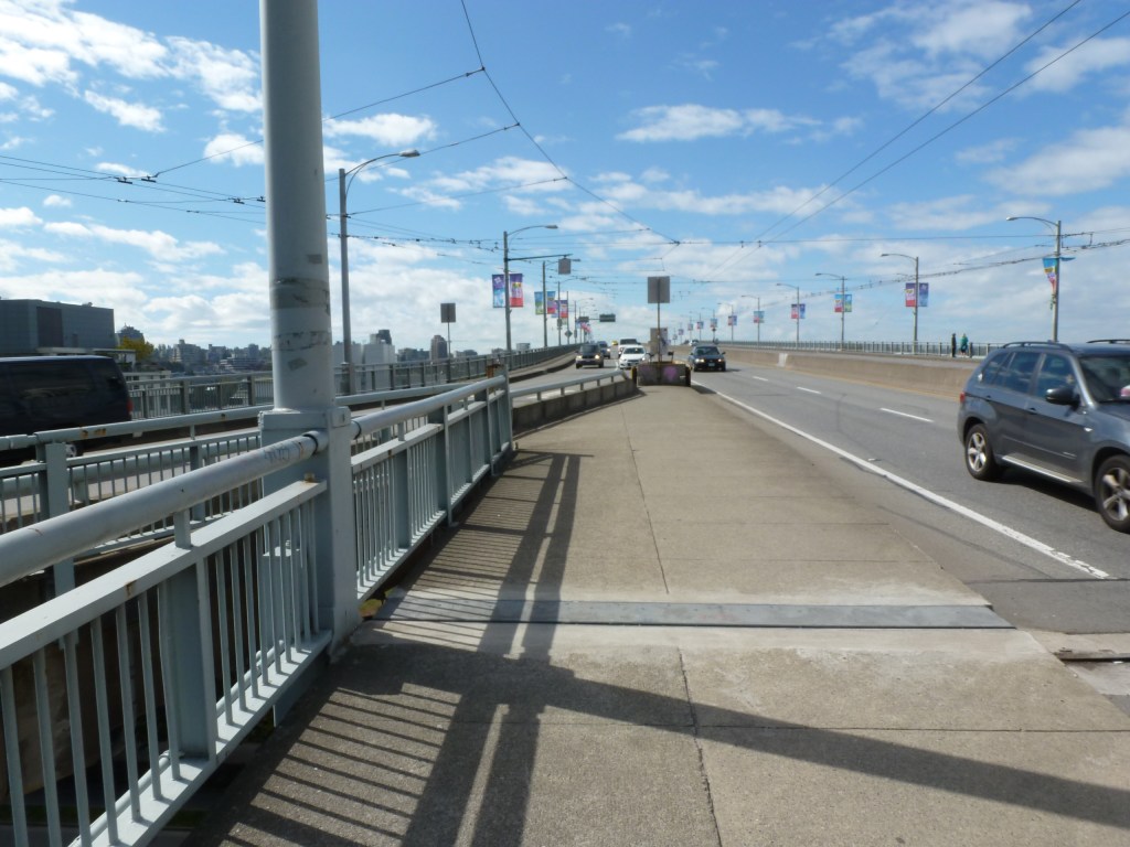 The open, through-arch Frederick Douglass Memorial Bridge was one of our expected encounters. I probably would have been ecstatic about the unexpected benches in the lookouts between the arches under previous circumstances. After all, it isn’t every day that you find a bench on a bridge. However, in the past, I probably would have just said “that’s cool,” photographed them, and moved on. Instead, I took full advantage of these seats for one of my rest and rehydration breaks. This slow down is the reason I spotted the Yard Park Bridge, a bridge I definitely needed to add to my collection.
