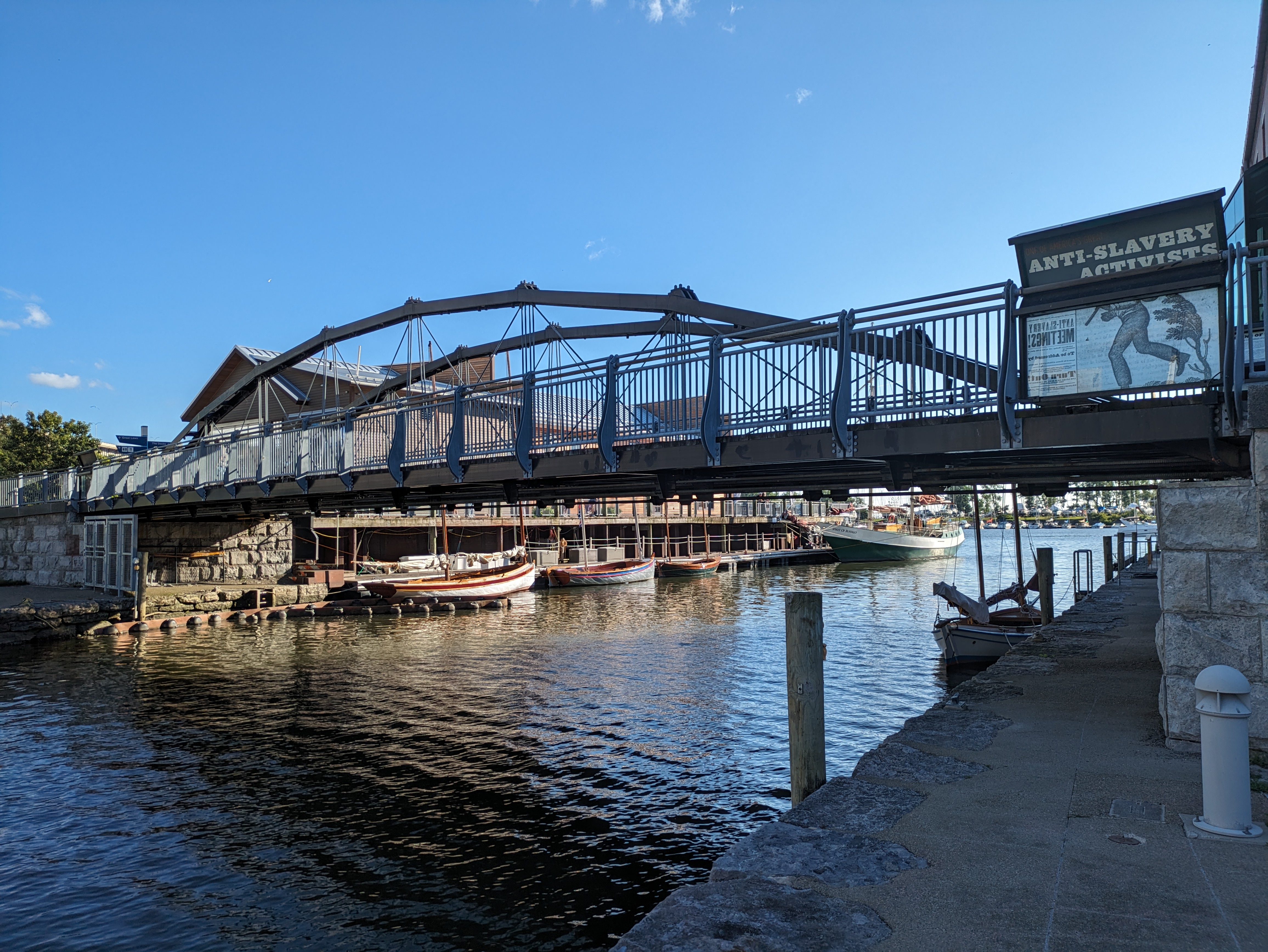 The open, through-arch Frederick Douglass Memorial Bridge was one of our expected encounters. I probably would have been ecstatic about the unexpected benches in the lookouts between the arches under previous circumstances. After all, it isn’t every day that you find a bench on a bridge. However, in the past, I probably would have just said “that’s cool,” photographed them, and moved on. Instead, I took full advantage of these seats for one of my rest and rehydration breaks. This slow down is the reason I spotted the Yard Park Bridge, a bridge I definitely needed to add to my collection.