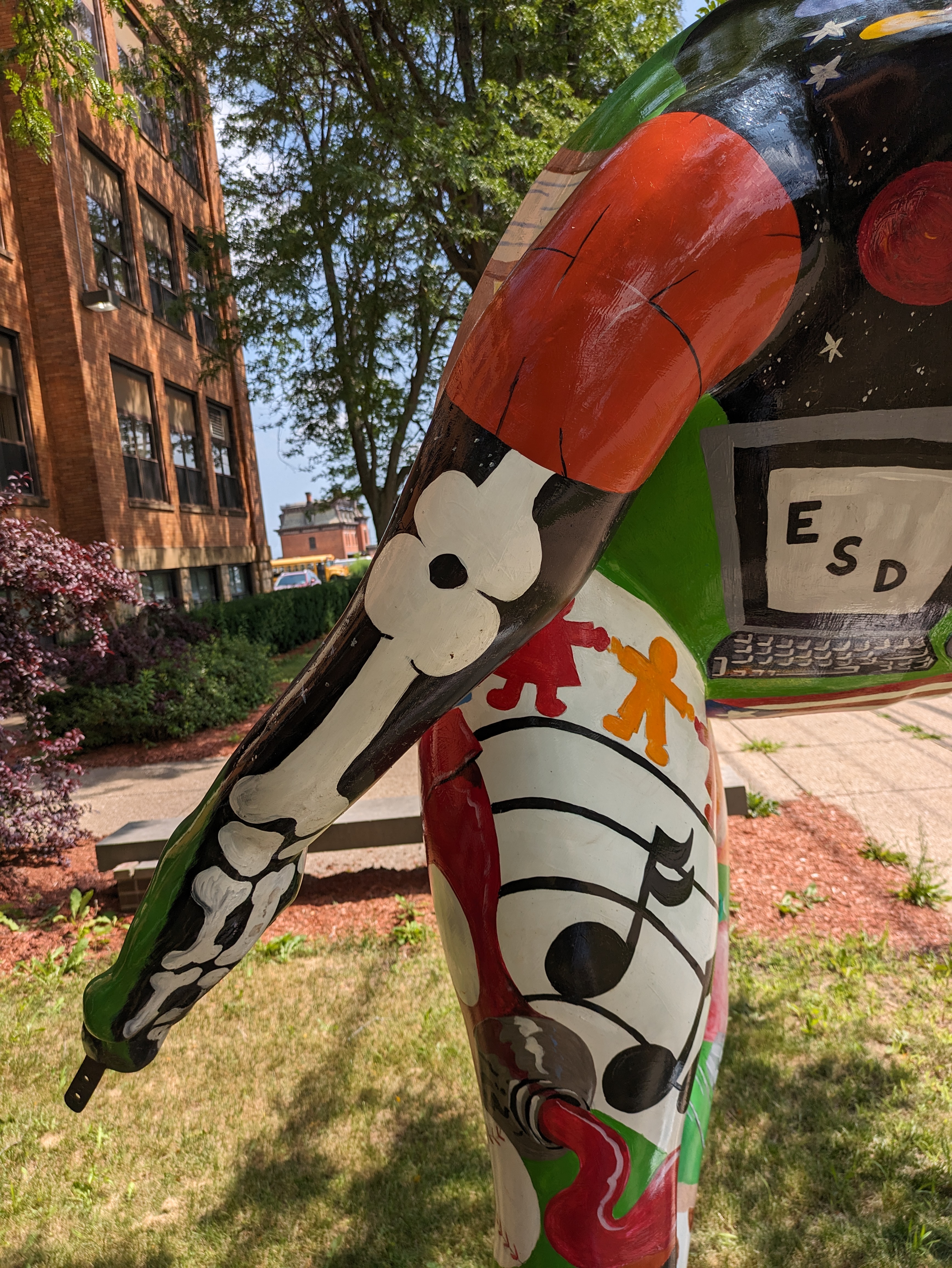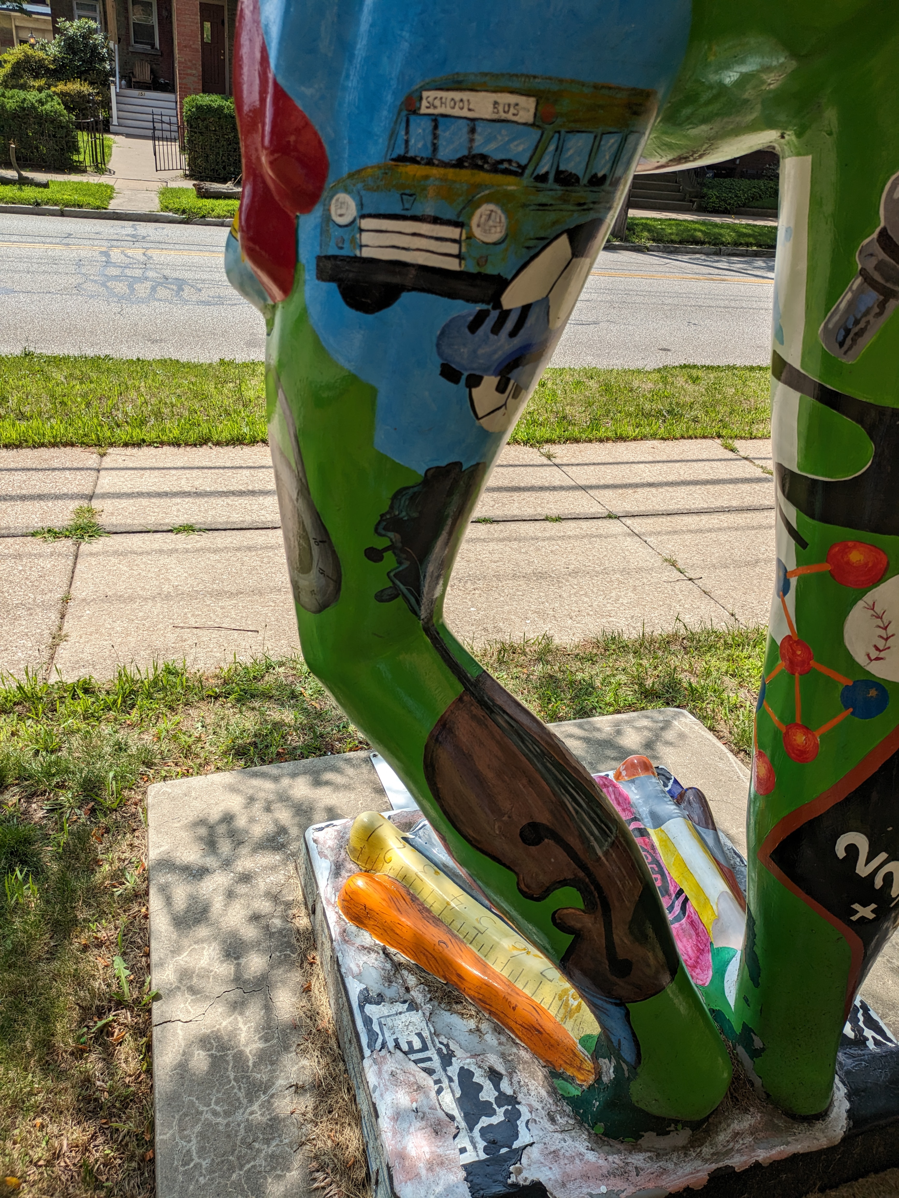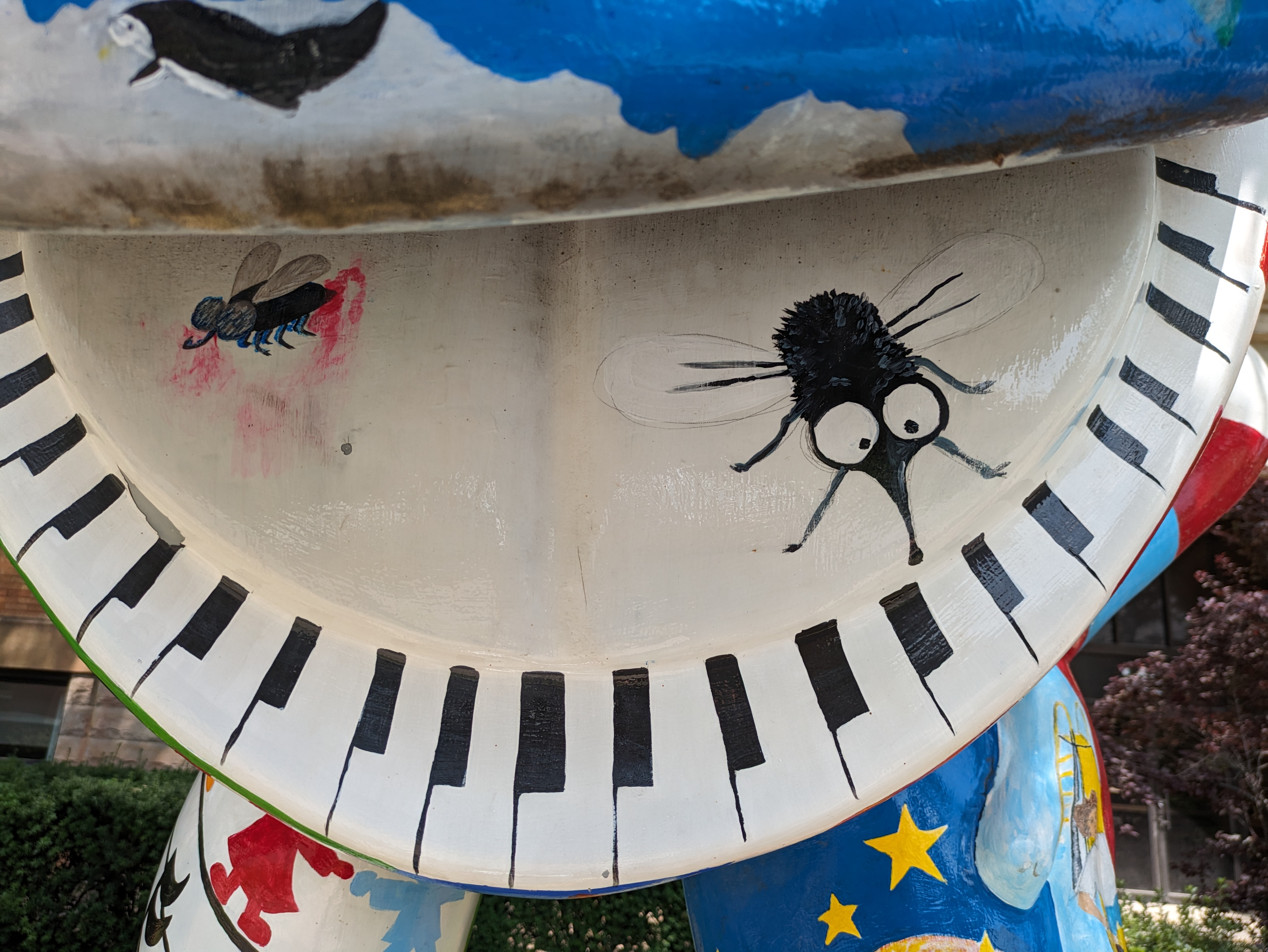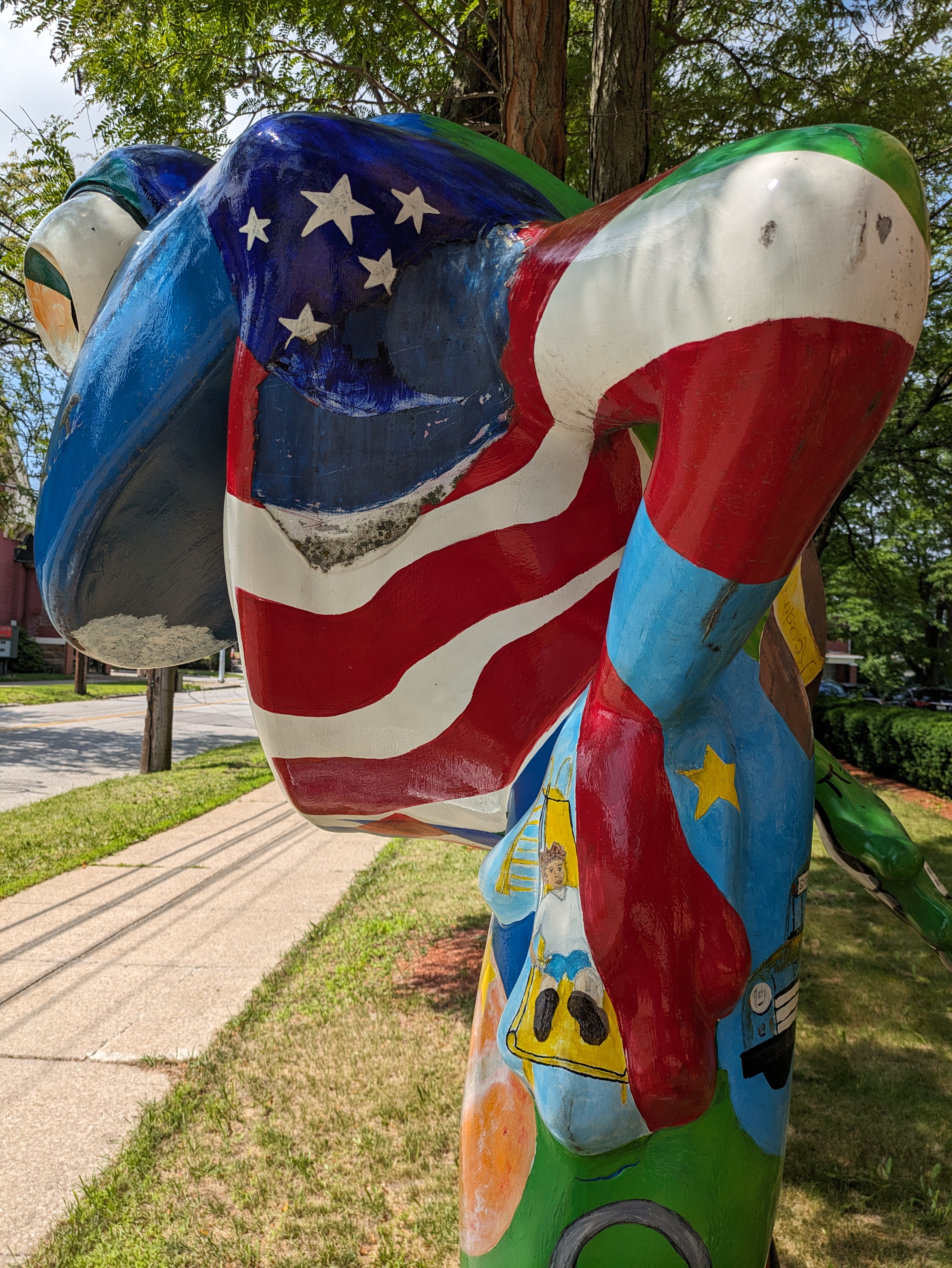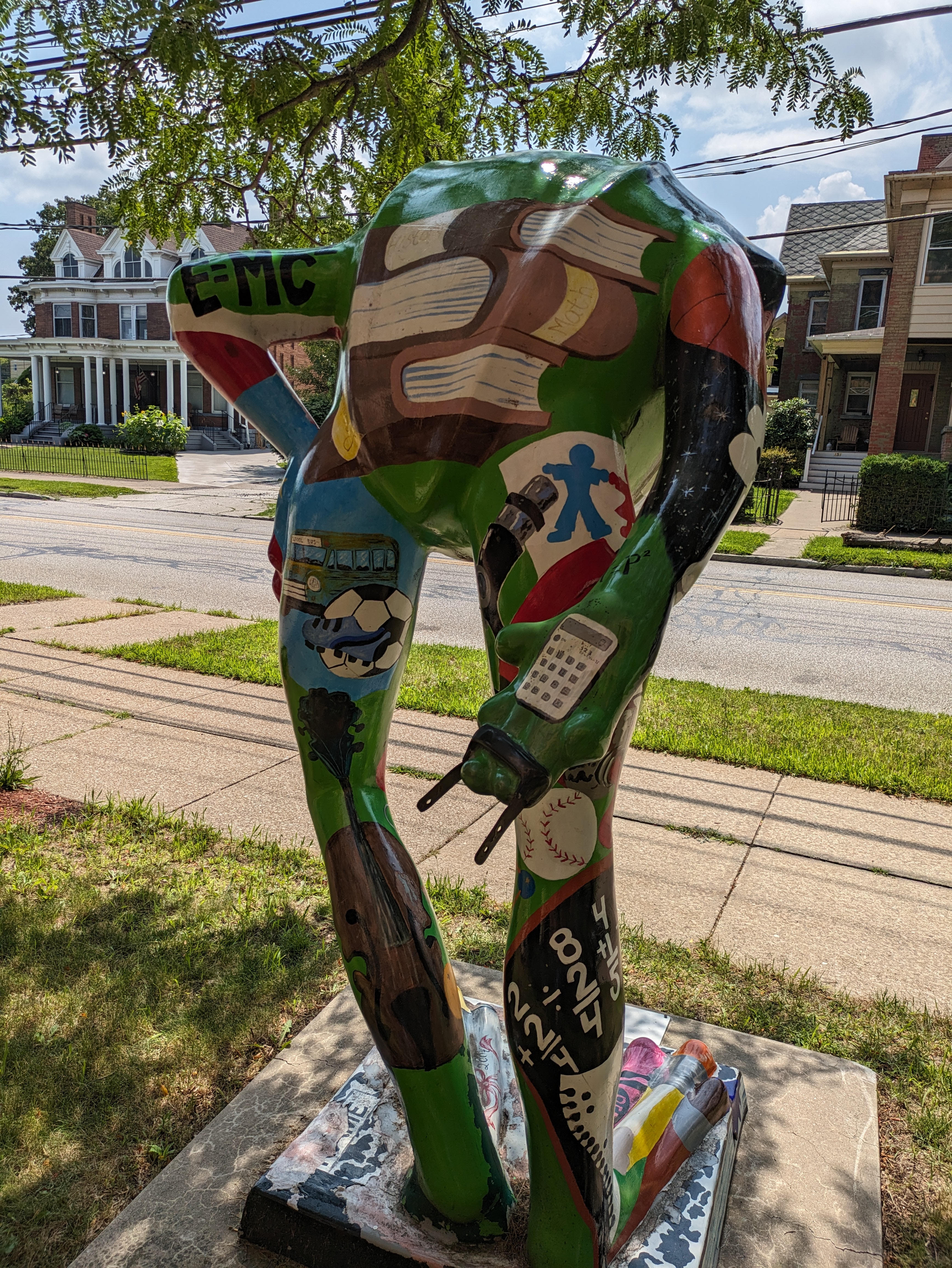 GoFish! was a fundraiser in Erie, PA, in 2001. I can’t find a match for this one in the “offishial” GoFish! book and the plaque underneath is too faded to read after 22 years in the sun and rain. Amy H.’s FourSquare map identified this one as “Goldfish.” Unfortunately, since FourSquare folded, I can no longer access her map. However, I have created my own which you can view on my new Public Art Maps page.