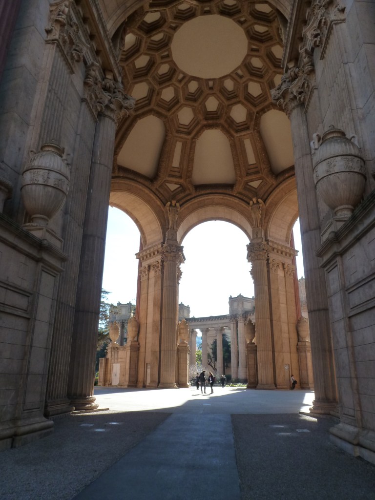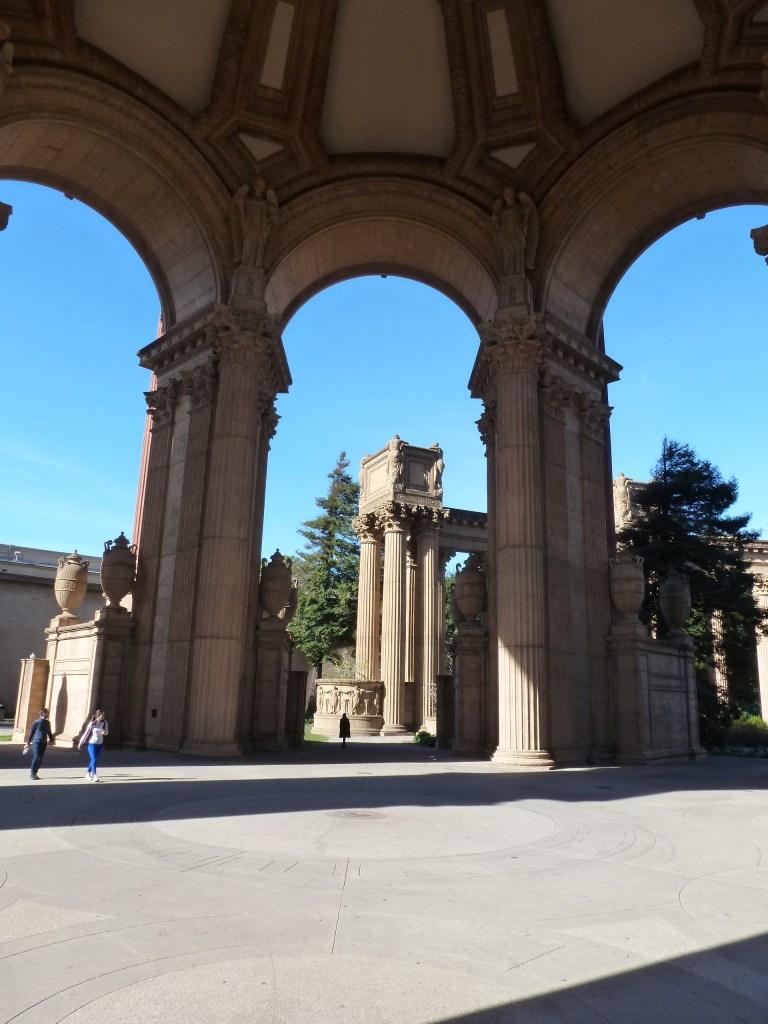 The Palace of Fine Arts was of a scale to inspire awe and intimidation. It was far more massive and taller than I had imagined. Walking underneath the rotunda, I felt insignificant. Are such large structures built to show us the insignificance of humanity? And yet, they are designed and constructed by humans, which means we create what makes us feel our own insignificance.