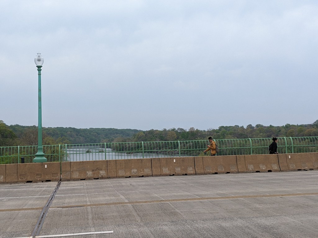 The Francis Scott Key Memorial Bridge is a curvilinear arch bridge carrying a six-lane highway with wide sidewalks on both sides over the Potomac River. It was built in 1917-1924. The width made it easy and comfortable to walk despite a high number of other pedestrians, bikes, and scooters on the sidewalk, and the speed of cars racing across.