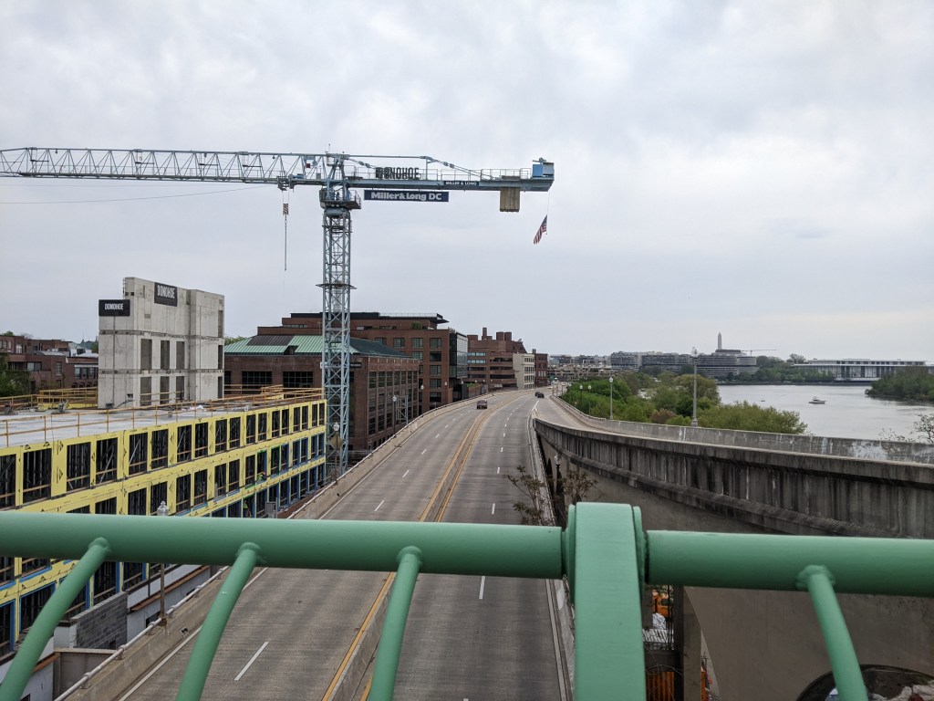 Georgetown and Rosslyn both sit high above the river, which meant the bridge is also elevated far above the river. It is high enough that an elevated freeway sits comfortably halfway between the bridge and the riverside ground level on the Georgetown side.