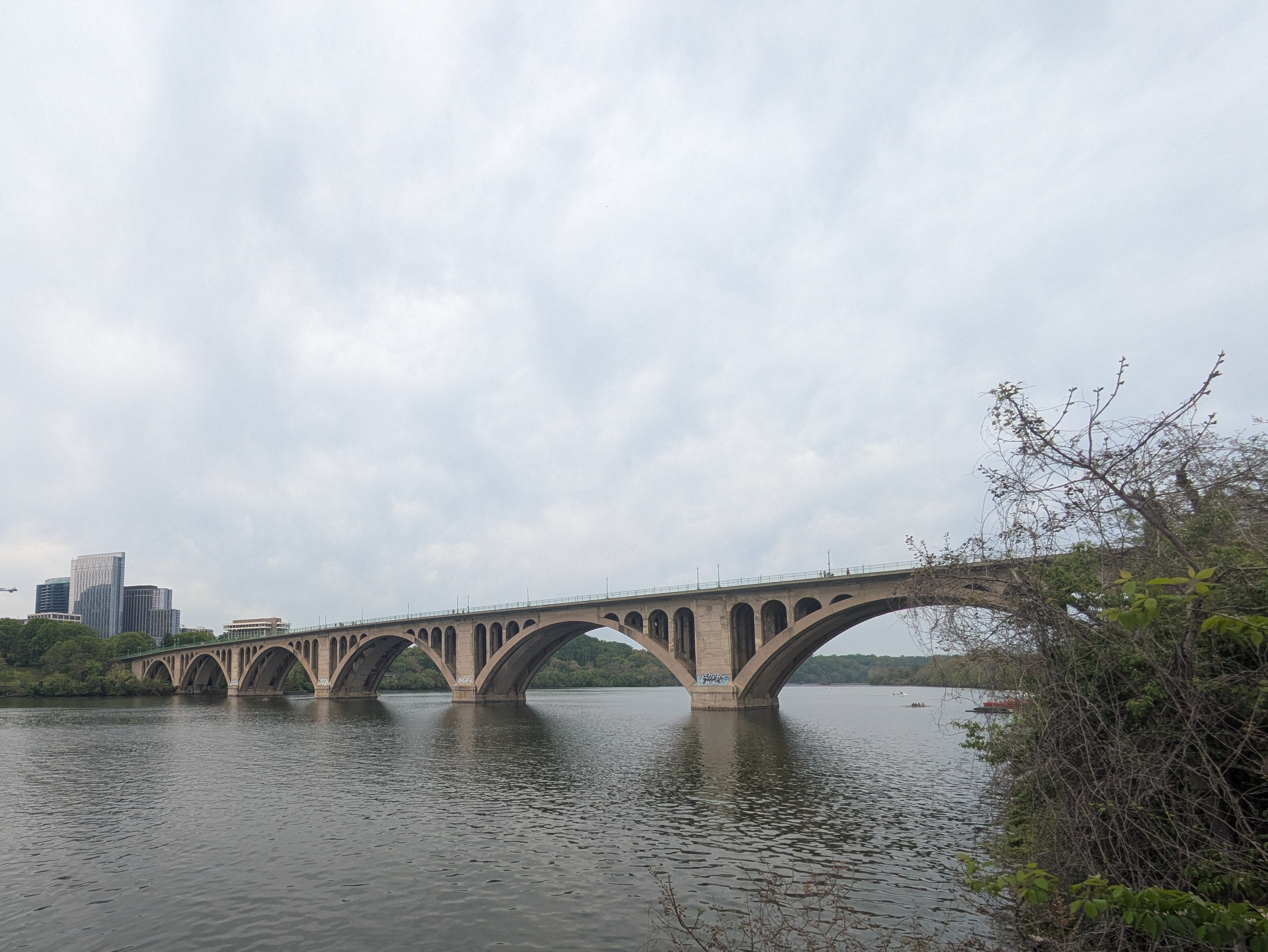 Georgetown and Rosslyn both sit high above the river, which meant the bridge is also elevated far above the river. It is high enough that an elevated freeway sits comfortably halfway between the bridge and the riverside ground level on the Georgetown side.