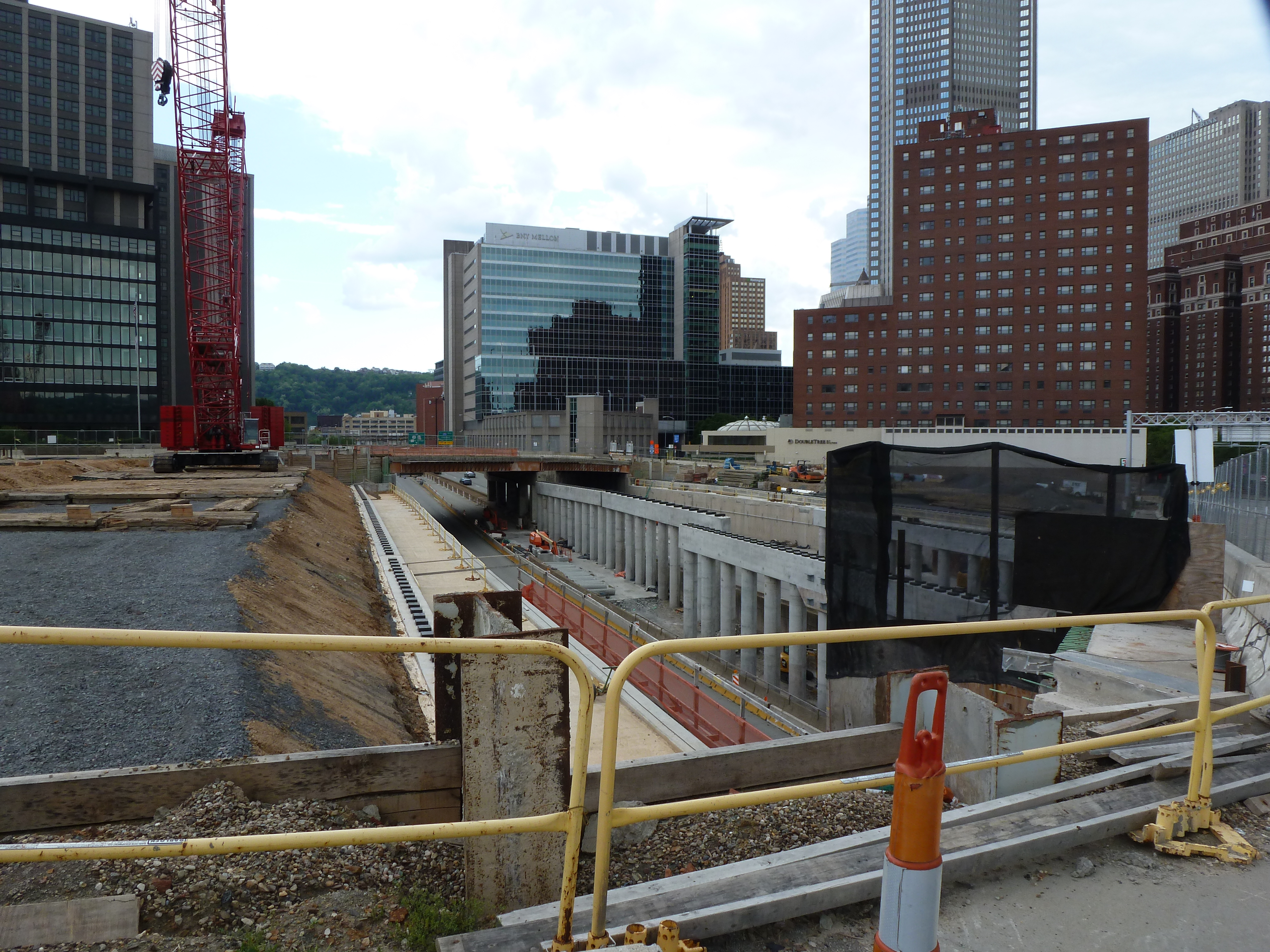 We went from the Fern Hollow Bridge to the Greenfield Bridge, as the last time we were all in Pittsburgh together we watched the cloud of dust from the implosion of the former bridge through the trees of Schenley Park. We passed the Hot Metal Bridge, Birmingham Bridge, and South 10th Street Bridge before passing through the Armstrong Tunnel for the fun of it. That positioned us to encounter the CAP – which is one of those bridges that doesn’t look like a bridge – on our way toward the Allegheny River. I added an extra turn so that we could pass over the 28th Street Bridge – the only through truss bridge over the busway – before crossing the 31st Street Bridge (my other favorite bridge to walk, except for the fact that it is out of the way). We got out of the car at this point to walk the pedestrian/bike trail bridge to Herr’s Island. While that was the end of this unofficial tour, we did pass by the 40th Street Bridge and cross the R.D. Fleming or 62nd Street Bridge to complete our loop.