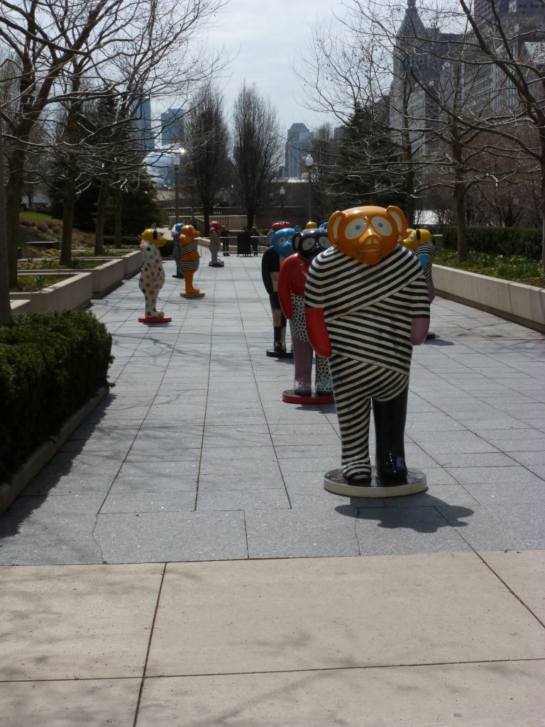 Chicago is one of the US cities with perhaps the most well-known art parade fundraisers, though I’ve only found a few of the sculptures after the fact (two cows, a dog, and a dog). Jun Kaneko’s temporary installation of Dangos caught my eye in 2013 as a similar kind of artwork, but one that I didn’t have to go hunting down each individual piece.