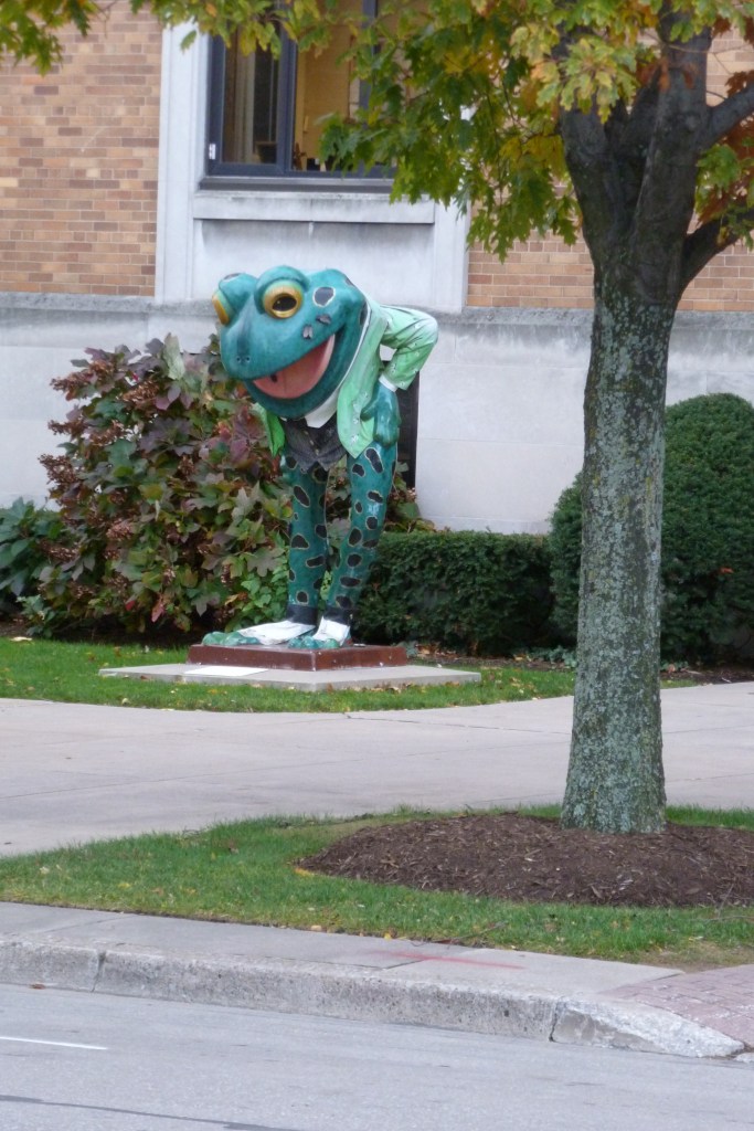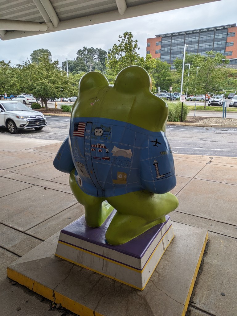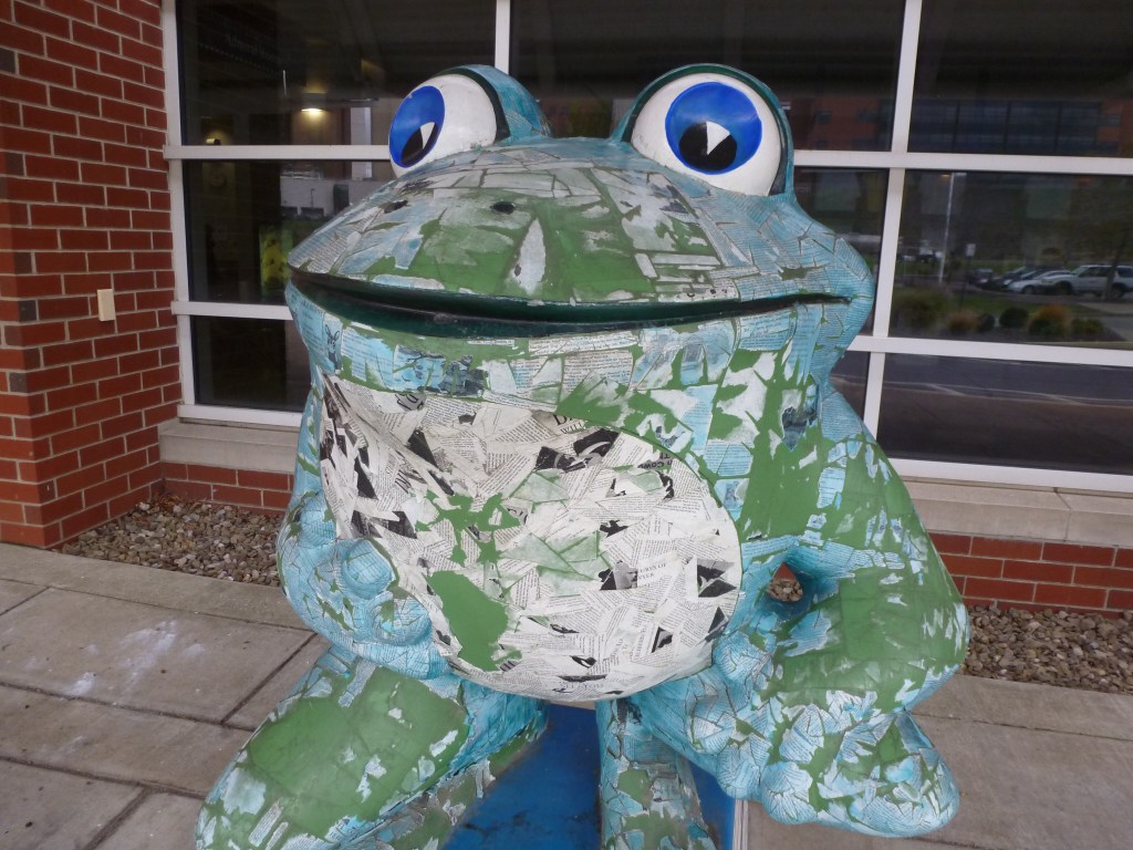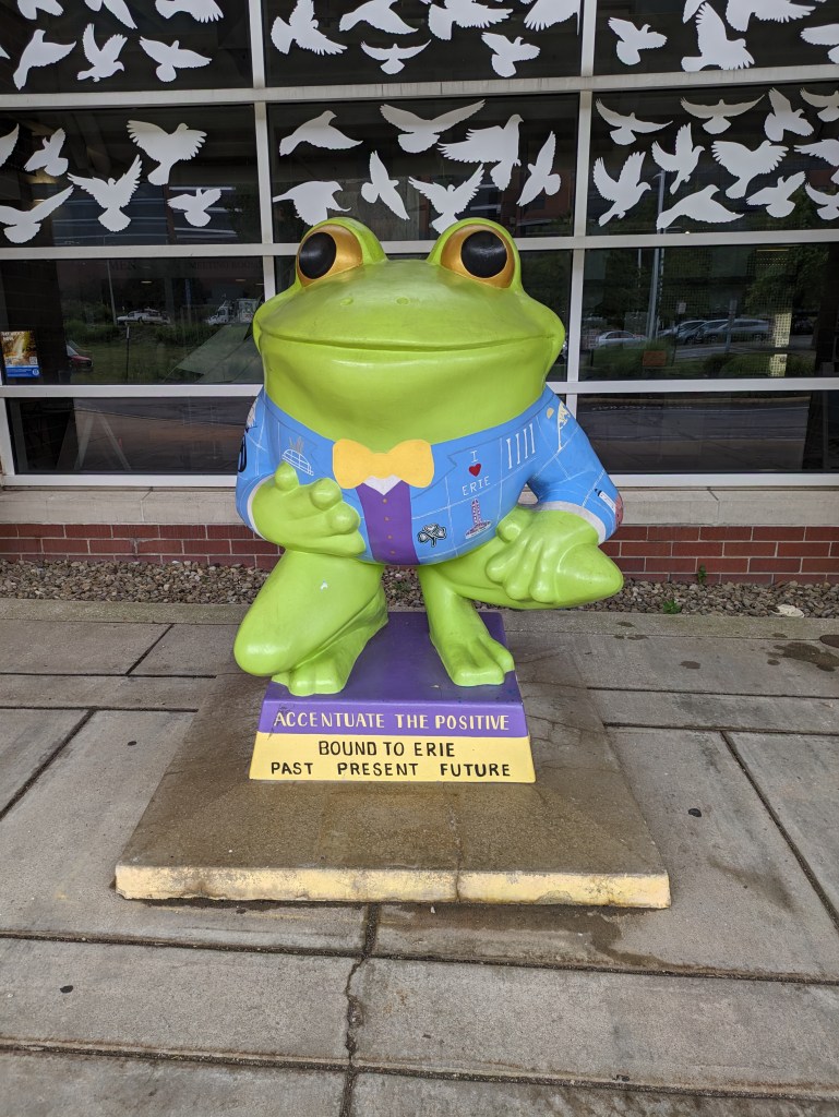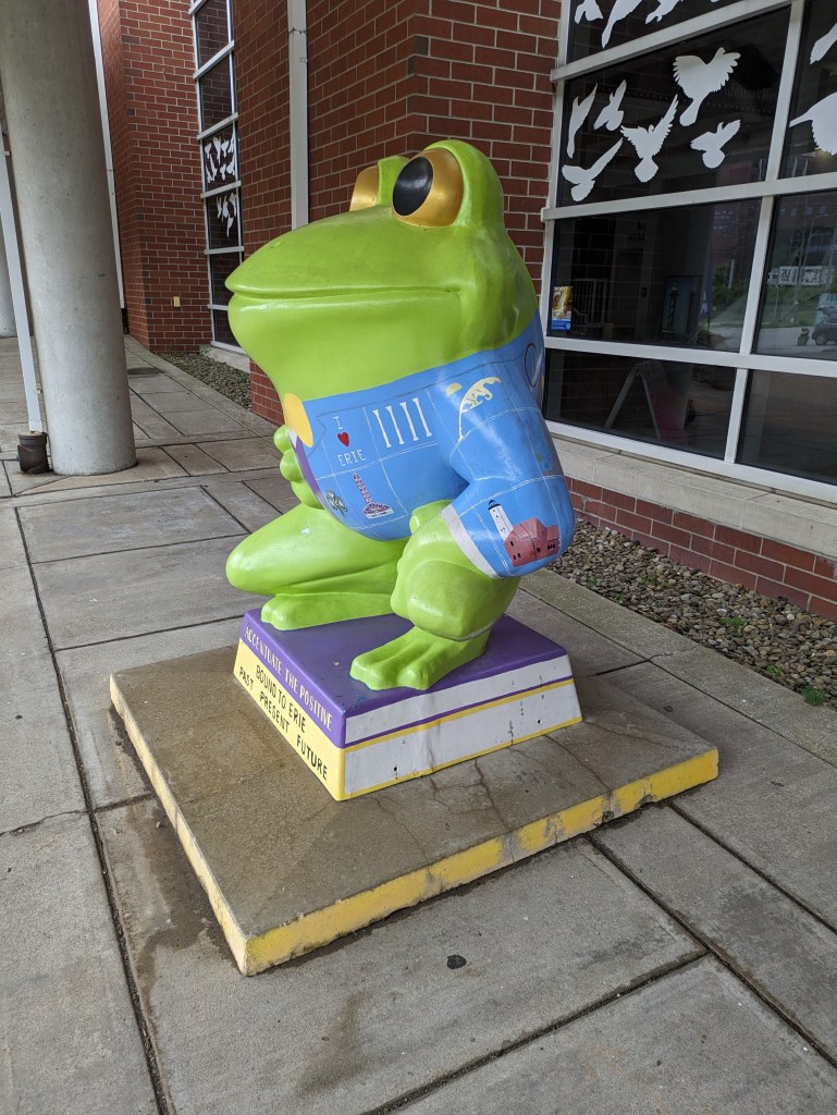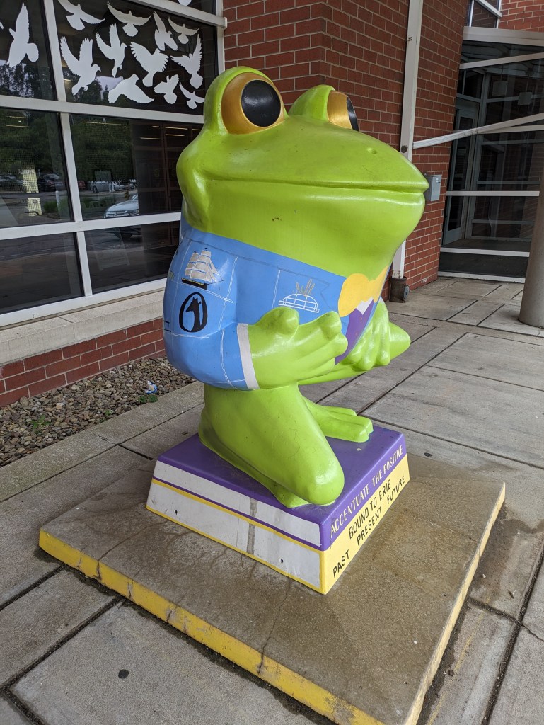 LeapFrog! was a fundraiser in Erie, PA, in 2004. I missed my turn on my way home from Presque Isle in 2022 and stumbled upon “On Golden Pond” by Chuck Benson and Bill Lechner. A few months later, I found Ami H.’s map and list of the frogs, which enabled me to intentionally find frogs on future trips to Erie.