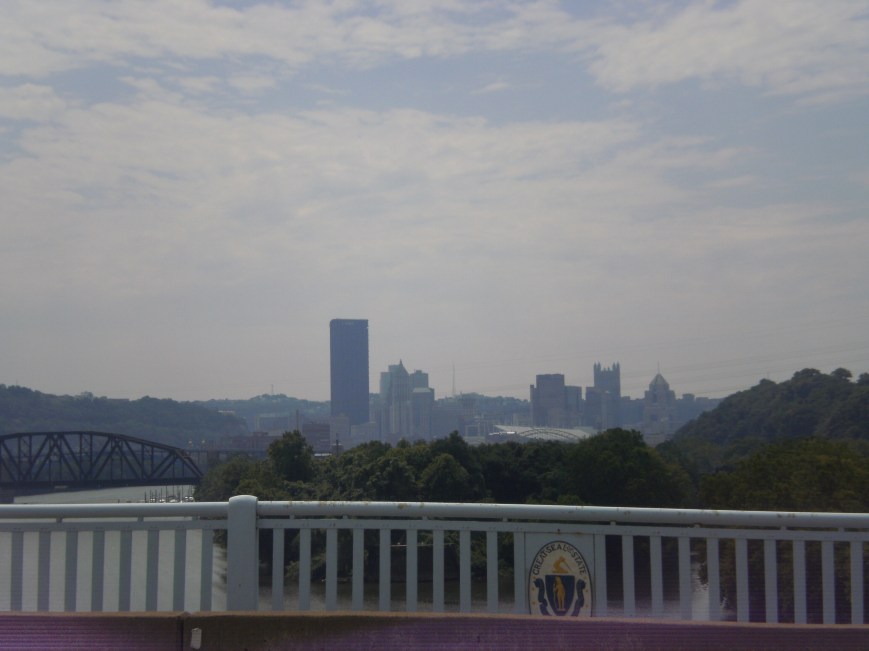 On the bridge itself are seals. I did not look closely at them as on this, my first official walk across a bridge, I was mostly concerned with the views from the bridge and not the bridge itself. According to PGHbridges.com these seals are the seals of Allegheny County and the thirteen original colonies repeated up and down the bridge.