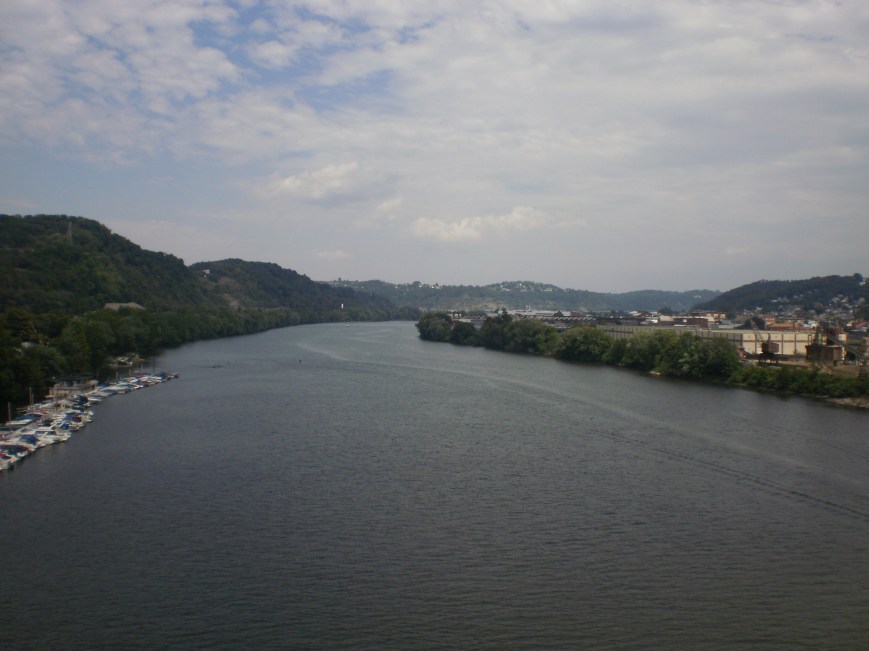 Up until this point on the Allegheny River, both sides of the river are part of the City of Pittsburgh. Now the right-hand side of the river in the upstream view above is Pittsburgh while the left-hand side belongs to other municipalities.