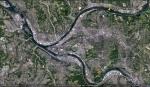 The upstream and downstream photos present a snapshot of what this part of the city looks like. Downstream, the 62nd Street Bridge, aka R.D. Fleming Bridge, (see July 24 post) downtown Sharpsburg, Six Mile Island, and lots of trees are visible. Upstream, trees, a railroad bridge, a dock for personal boats, and the roof of one of the waterworks processing buildings are visible. Overall there is a very rural feeling six miles up the Allegheny from downtown.