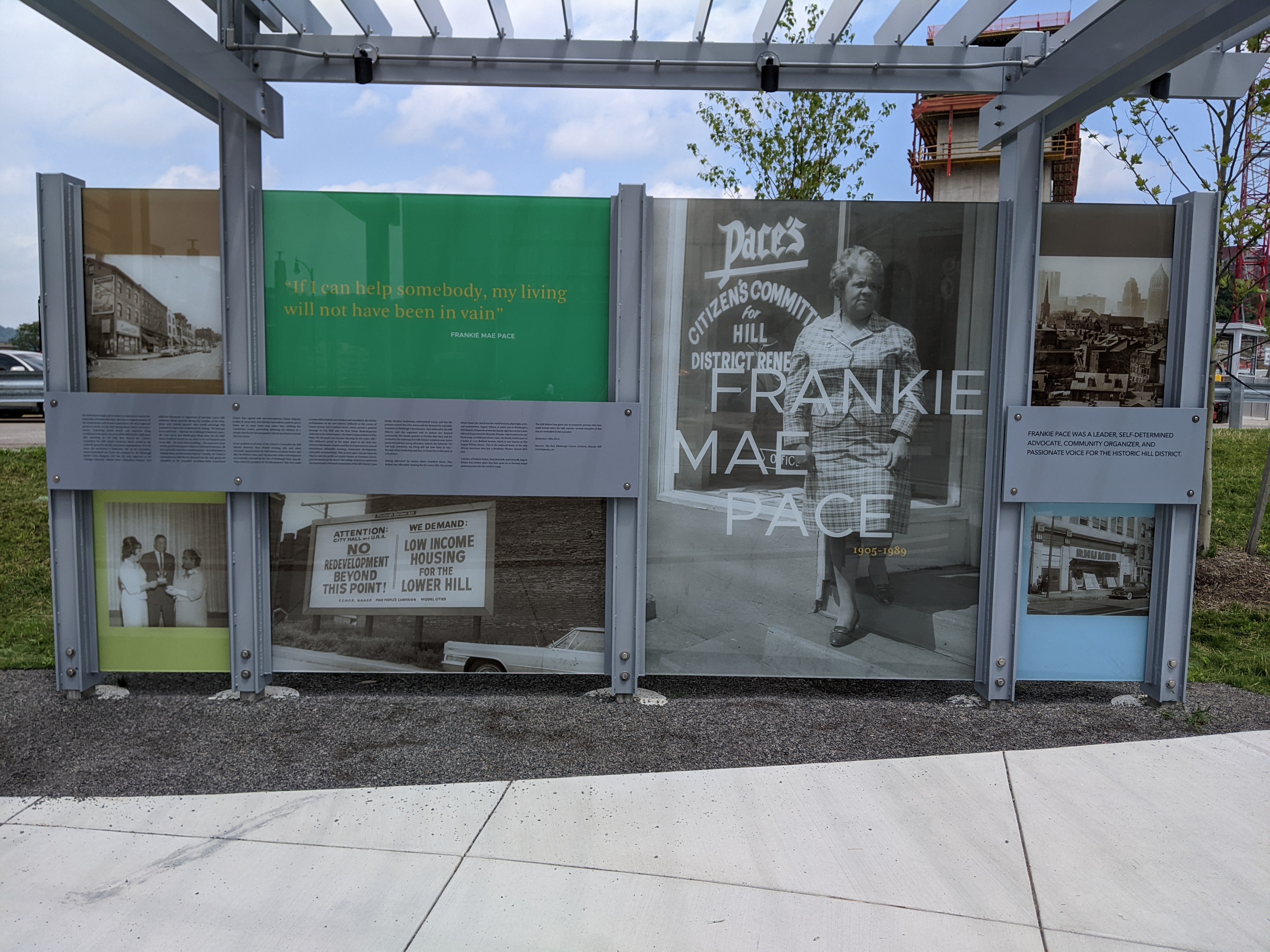 The ribbon-cutting for the CAP, now called the Frankie Pace Park, happened on schedule on November 22, 2021. The Tribune-Review, Pittsburgh Post=Gazette, WTAE, KDKA/CBS, and SAI Consulting Engineers reported on the ceremony. The Tribune-Review and WTAE also have articles on the resolution earlier this month by City Council to name the park after Frankie Pace (1905-1989), a community activist and business owner in the Lower Hill.