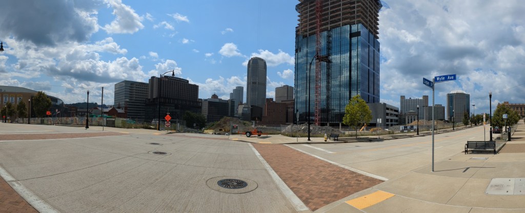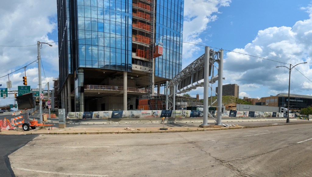 This blog post is part of an on-going photographic series to watch the redevelopment of the Lower Hill. Periodically, at least once a year, I return to the site to take new photographs. In addition, I include links to articles about the project that I’ve encountered since the previous post in the series. At the end of the post, there are links to all the previous posts in the series.