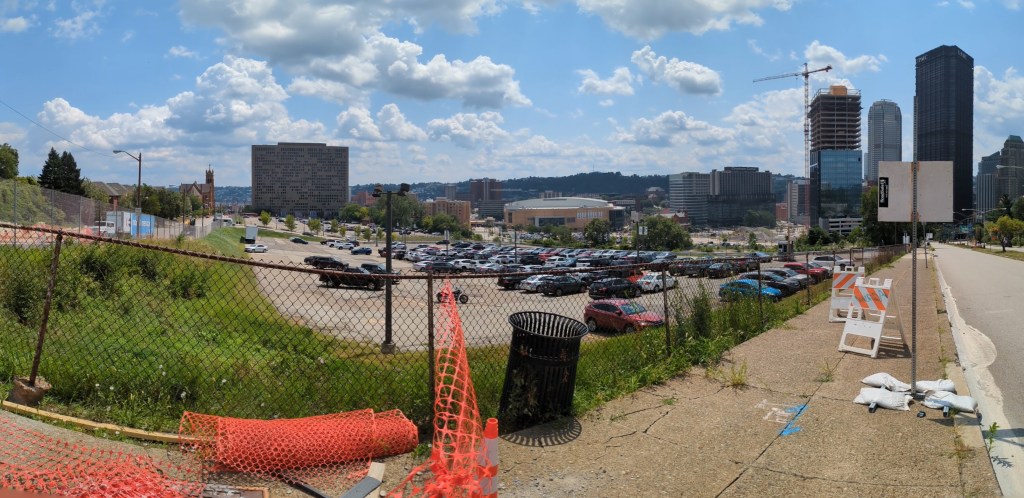 The Lower Hill is a notorious site in Pittsburgh, a scar on the city from the height of Urban Renewal. A vibrant (but poor and predominately Black) neighborhood was demolished in the 1950s so the City could build a cultural mecca centered on a Civic Arena, most of which ended up not being built and was left as parking lots.