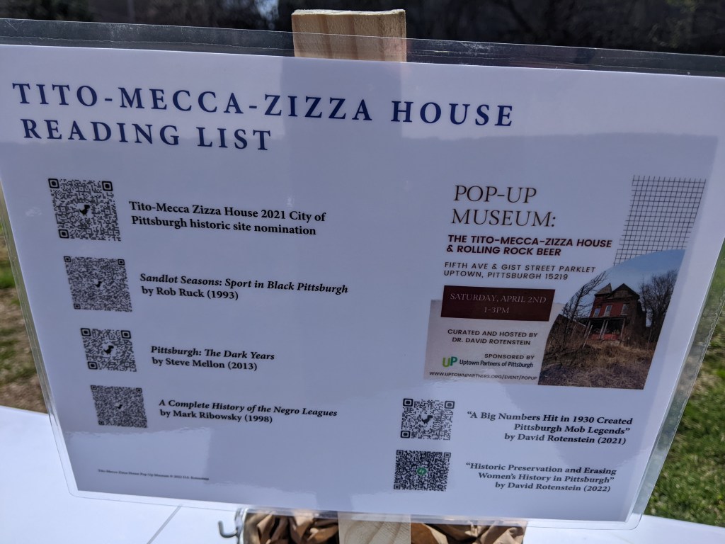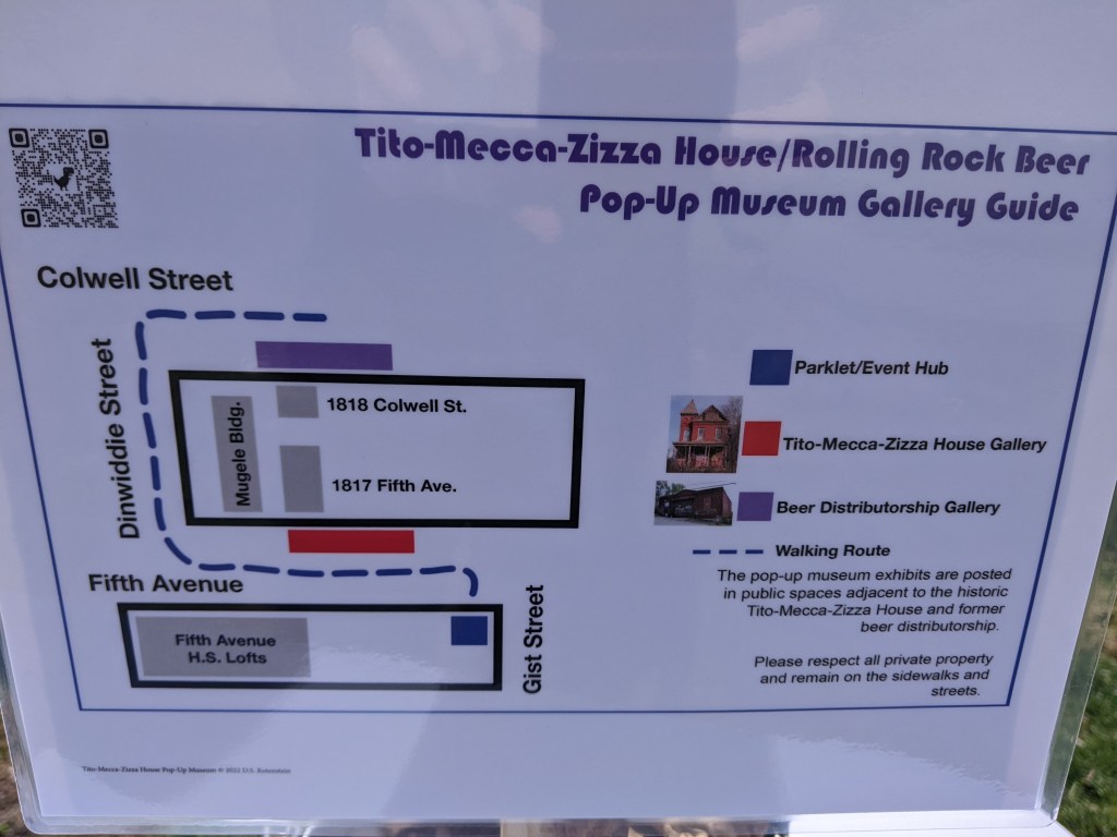 The big news of 2022 was the successful nomination of the Tito-Mecca-Zizza House for historic preservation. Despite a rocky road, in June, City Council voted to designate the house as a historic property. The property owners were vehemently opposed to the nomination throughout the process. The process to nomination involved two meetings at each of the Historic Commission, Planning Commission, and City Council. The Historic Commission did not recommend the nomination to City Council, but the Planning Commission did. The property is considered architectural significant and unique and it has ties to Rolling Rock beer, the Negro League, and the American-Italian community of Pittsburgh. I attended a pop-museum event at the site during the nomination process and include photos below.