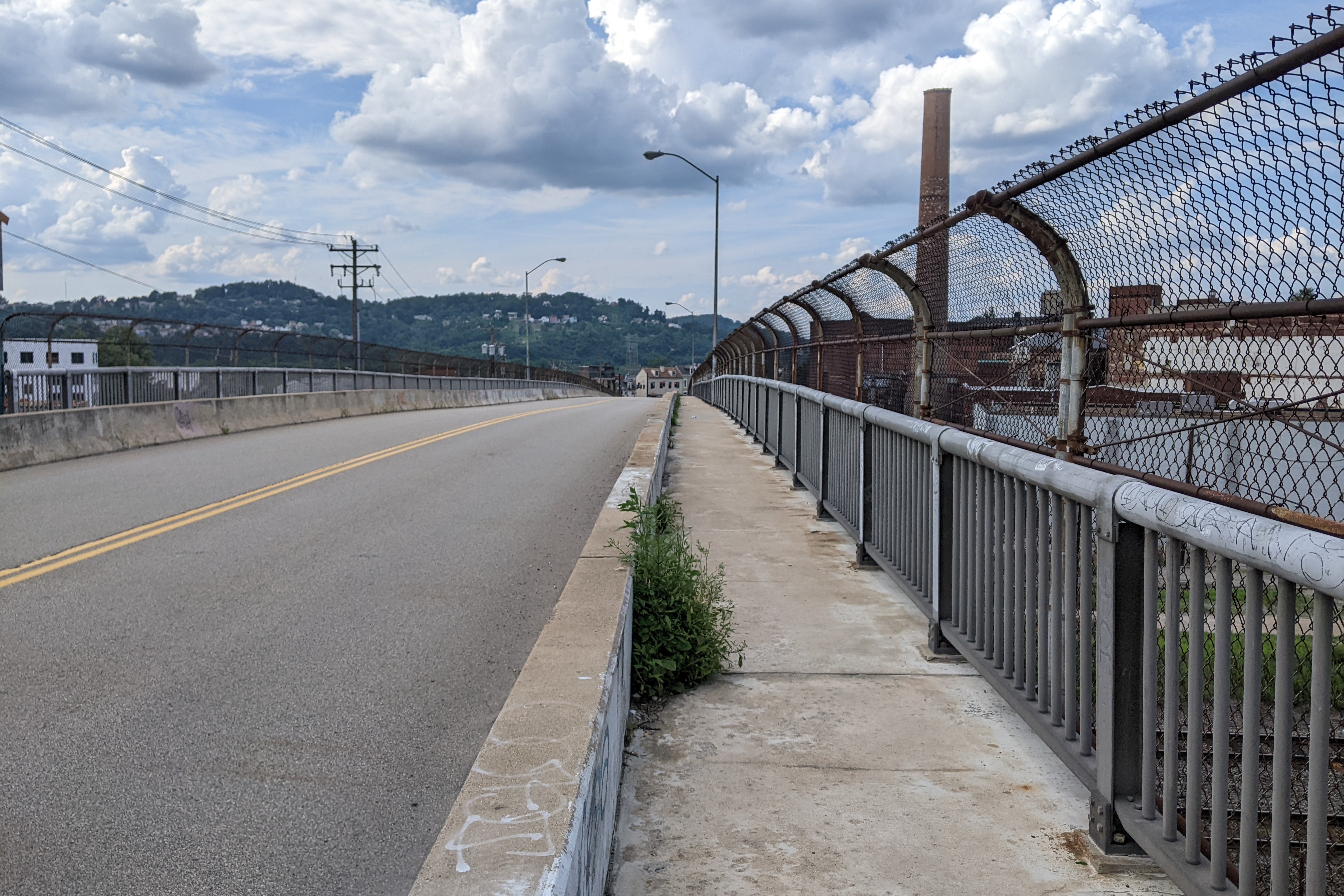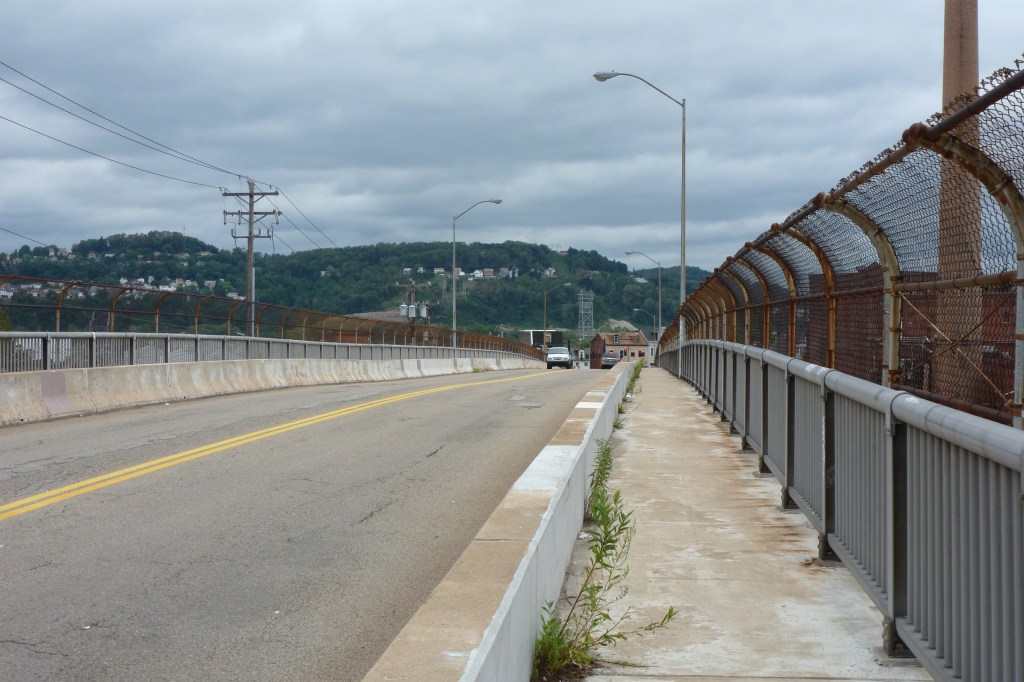 To date I have walked the 31st Street Bridge twice. The first time was a few years ago when I had over two hours to kill between an event downtown and a meeting in the Strip a few blocks from the bridge. So I naturally decided to spend it by walking from the first to second location along the Three Rivers Heritage Trail. It was winter and I saw the first flurries of the season as I crossed this bridge. For that reason, I remember the walk and the bridge fondly though I was disappointed and surprised when I arrived at the Strip District end of the bridge to realize how far away I was from the stores in the Strip. I had been planning on getting a snack at one of the nice little ethnic groceries or perhaps at the bakery. As I was in a car every other time I had been to the Strip, I never realized how little of the neighborhood the stores took up. Fortunately, there was hot chocolate and a good spread of fruit and pastries at my meeting.