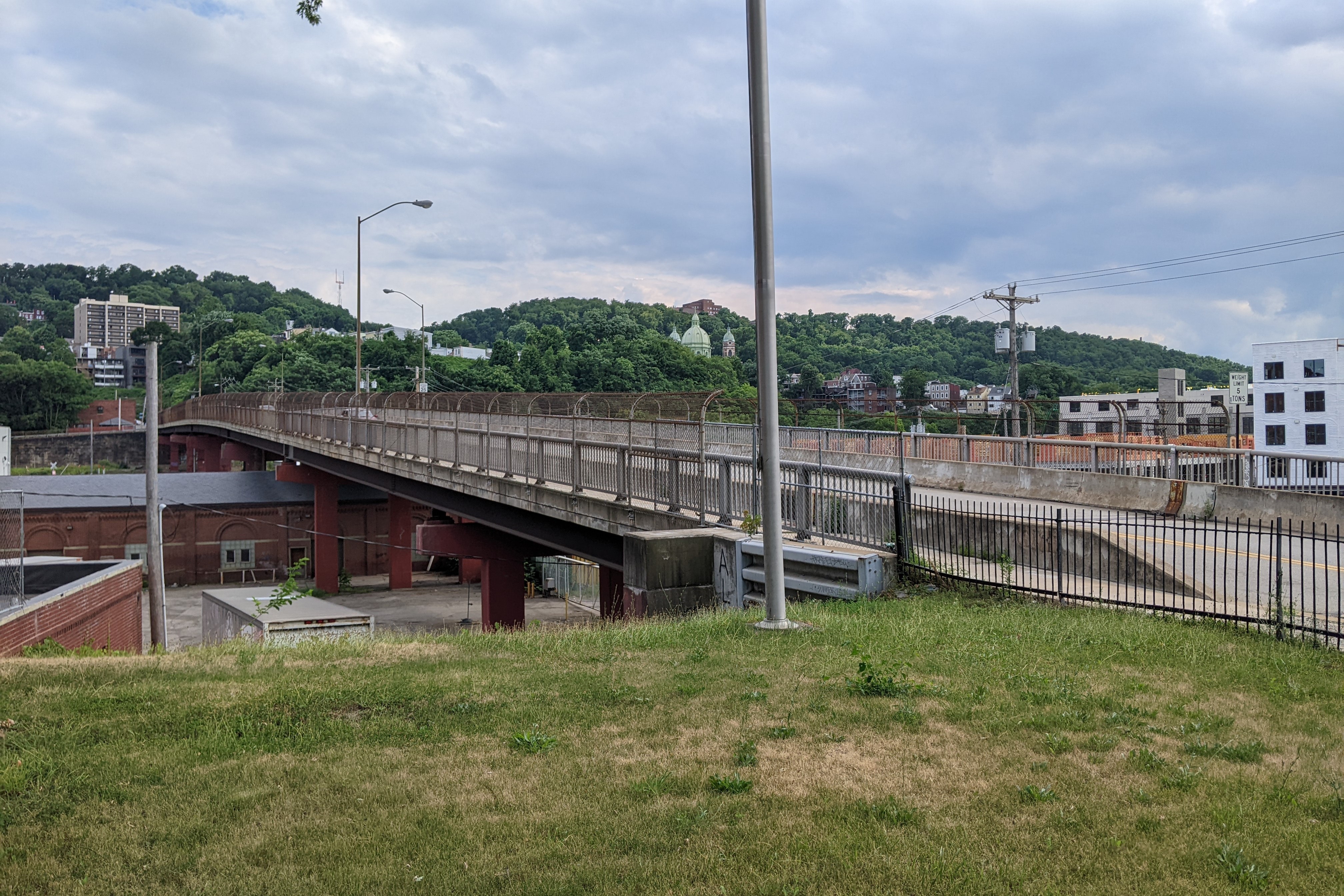 As I sat down to write this post, I realized that I have already discussed most of the observations I had or at least something similar in other posts. So I went to PGHbridges.com to look for some inspiration of something new to write. It has a nice description of the decorations on the bridge (see link), which I completely missed as I walked it this summer either because they aren’t there or because I looked in the wrong places as I thought there might be some decoration. The other thing that intrigued me on the website was the name of the bridge which is 31st Street Bridge, Number Six Allegheny River. I thought perhaps this meant it was the sixth bridge at this location; however PGHbridges.com says that the 31st Street Bridge replaced a former bridge at 30th Street. While the streets aren’t that far apart, it seems more likely that “number six” refers to it being the sixth bridge up the Allegheny from the Point, yet this would have to be only counting road bridges (not railroad). The 1929 G.M. Hopkins map shows that the sixth bridge from the point is the 16th Street Bridge when you count the railroad bridge between the 9th and 16th Street bridges.