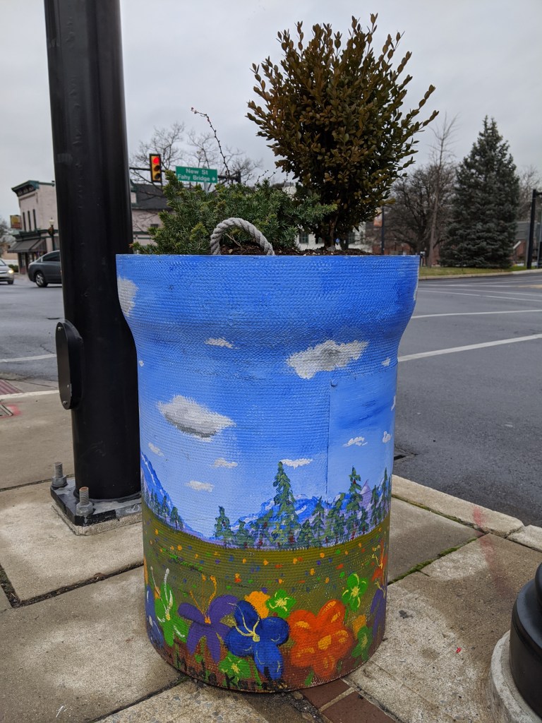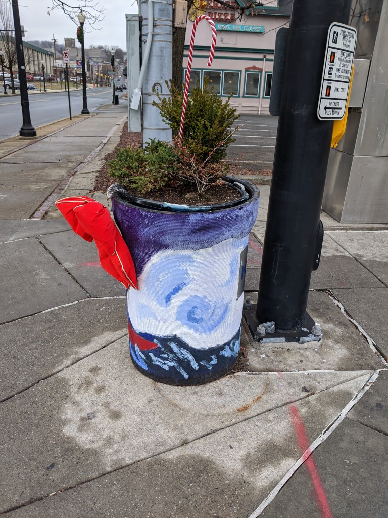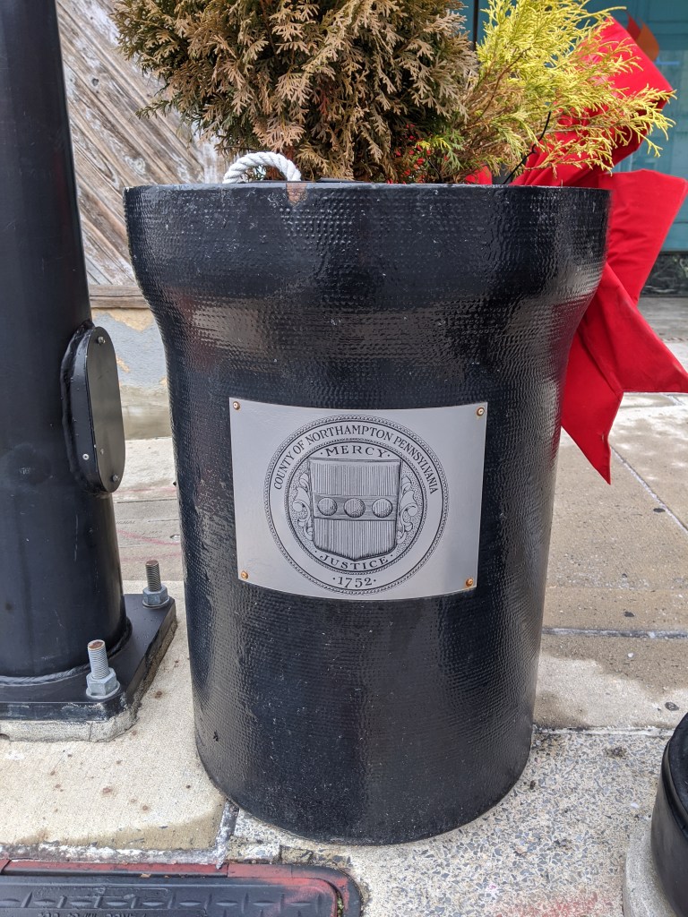 The planters are a beautification project of Bethlehem’s South Side Arts District Main Street Program. Pittsburgh gets a shout-out as inspiration for the arts work of this organization, but I think they’ve surpassed Pittsburgh with this project. While Pittsburgh has various murals and hosted a dinosaur fiberglass fundraiser during that fad, it doesn’t have initiatives to turn everyday street objects into public art canvases. I’ve enjoy stumbling across these everyday artworks in Bethlehem and Harrisburg.
