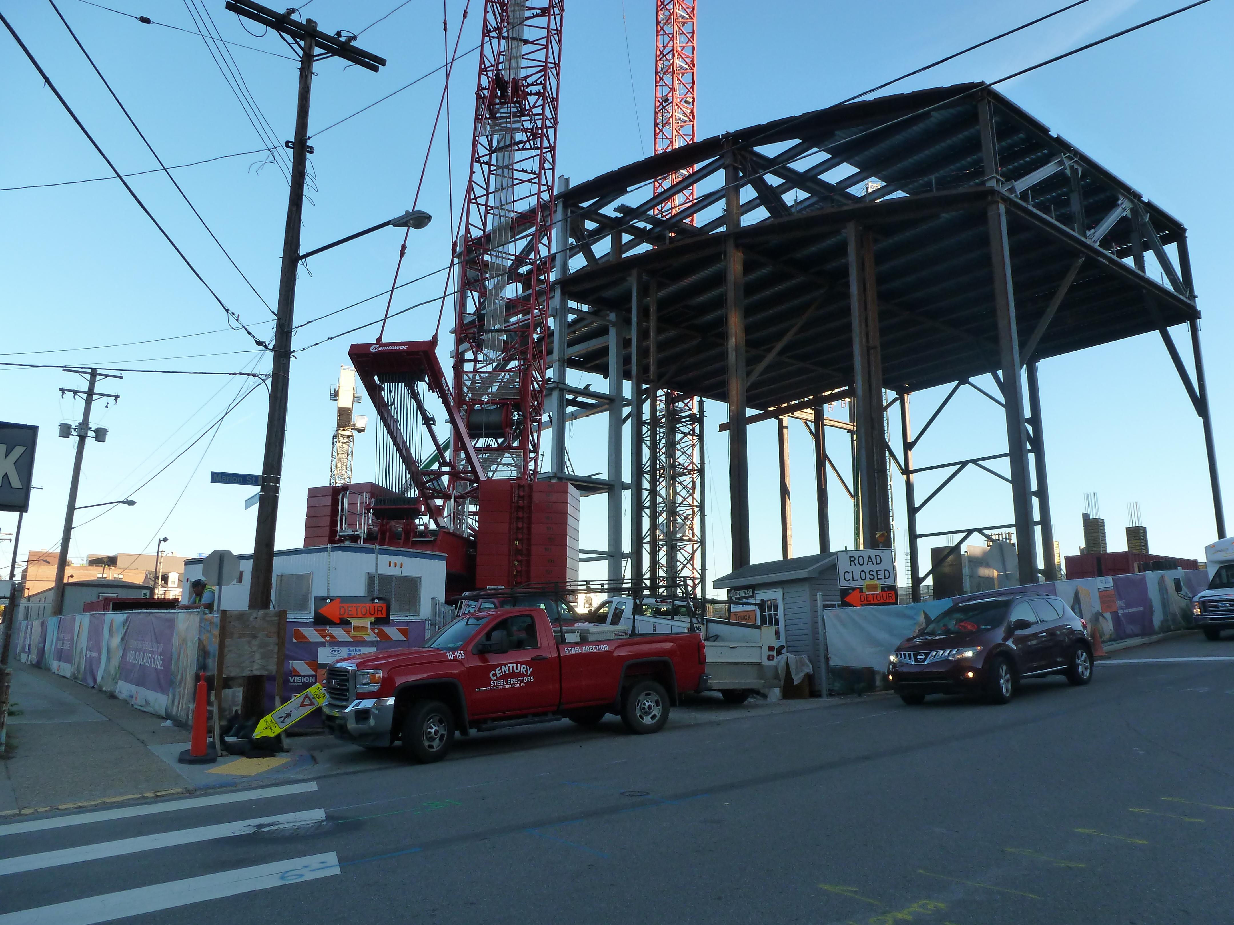 A new project for apartments and retail going up on 5th Avenue while the buildings around it appear to be preparing for renovation or demolition (image 8a)