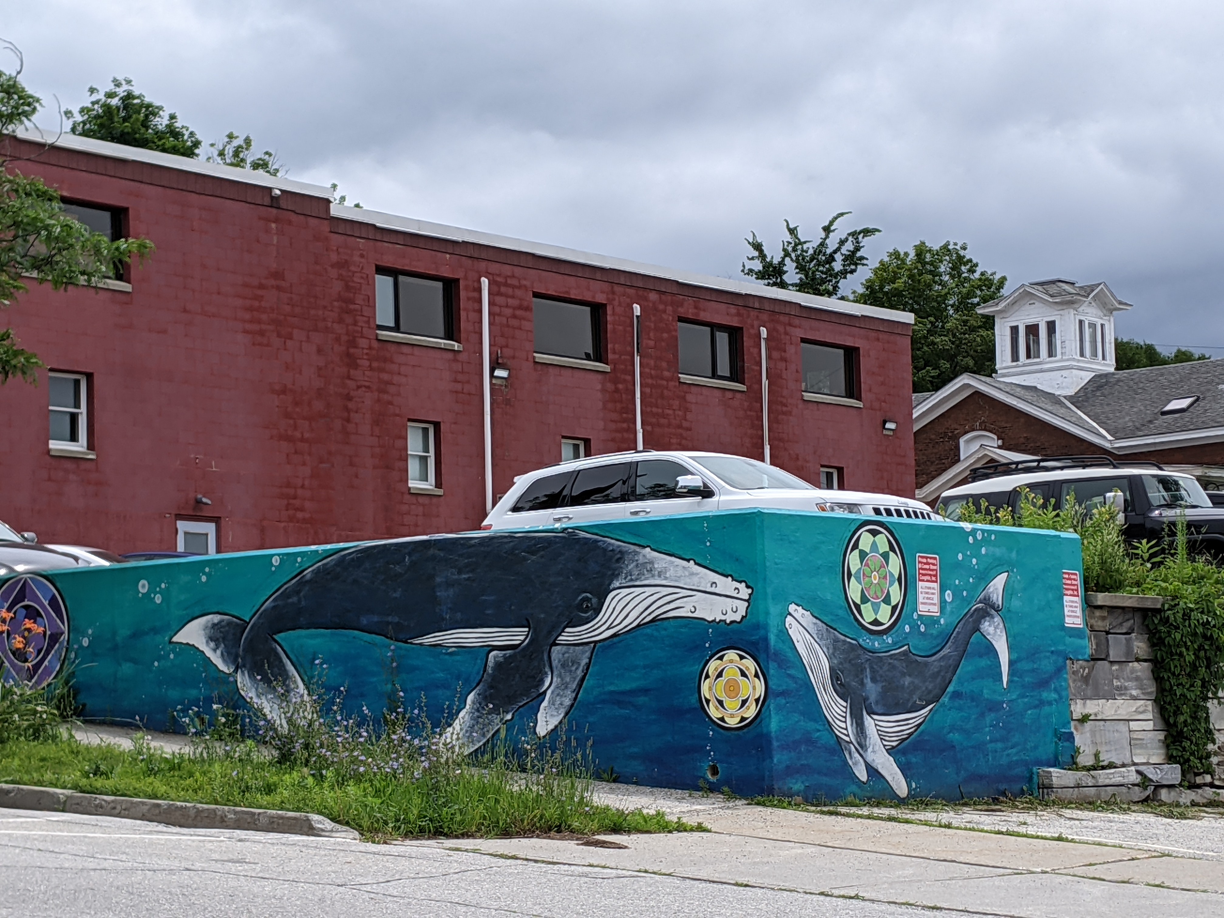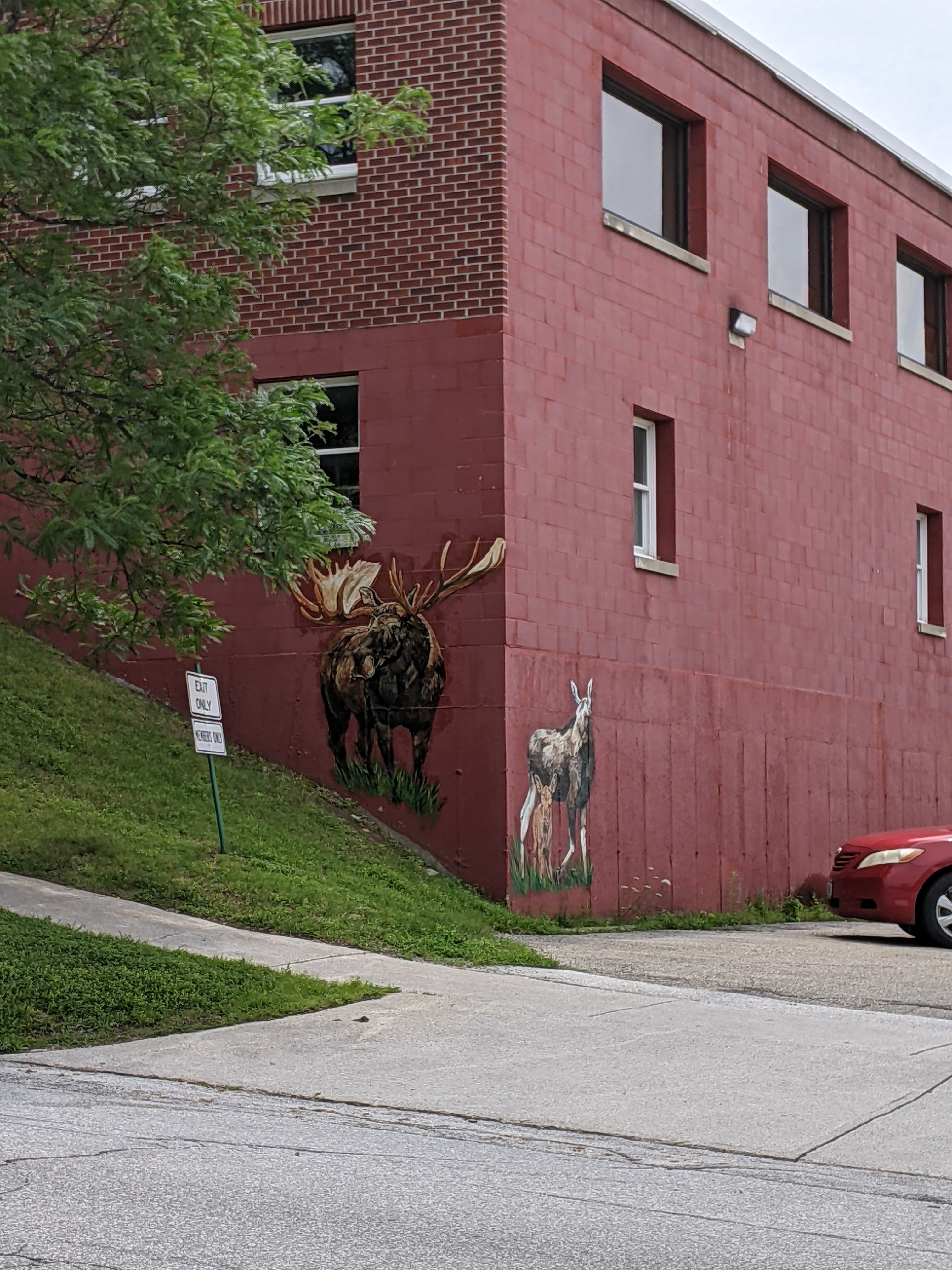 Today, Rutland has a strong environmental and arts focus. In my wanderings, I discovered two sculptures from the Trash2Art series, one from the HeART of Rutland series, and several murals. The mural of whales was particularly eye-catching given that the ocean is hours away. I wondered about the choice of subject until I saw the closest cross street was called Wales Street. The moose just up the street were almost as elusive as real moose – despite multiple trips to Vermont and one to Alaska, I have yet to see a live moose.