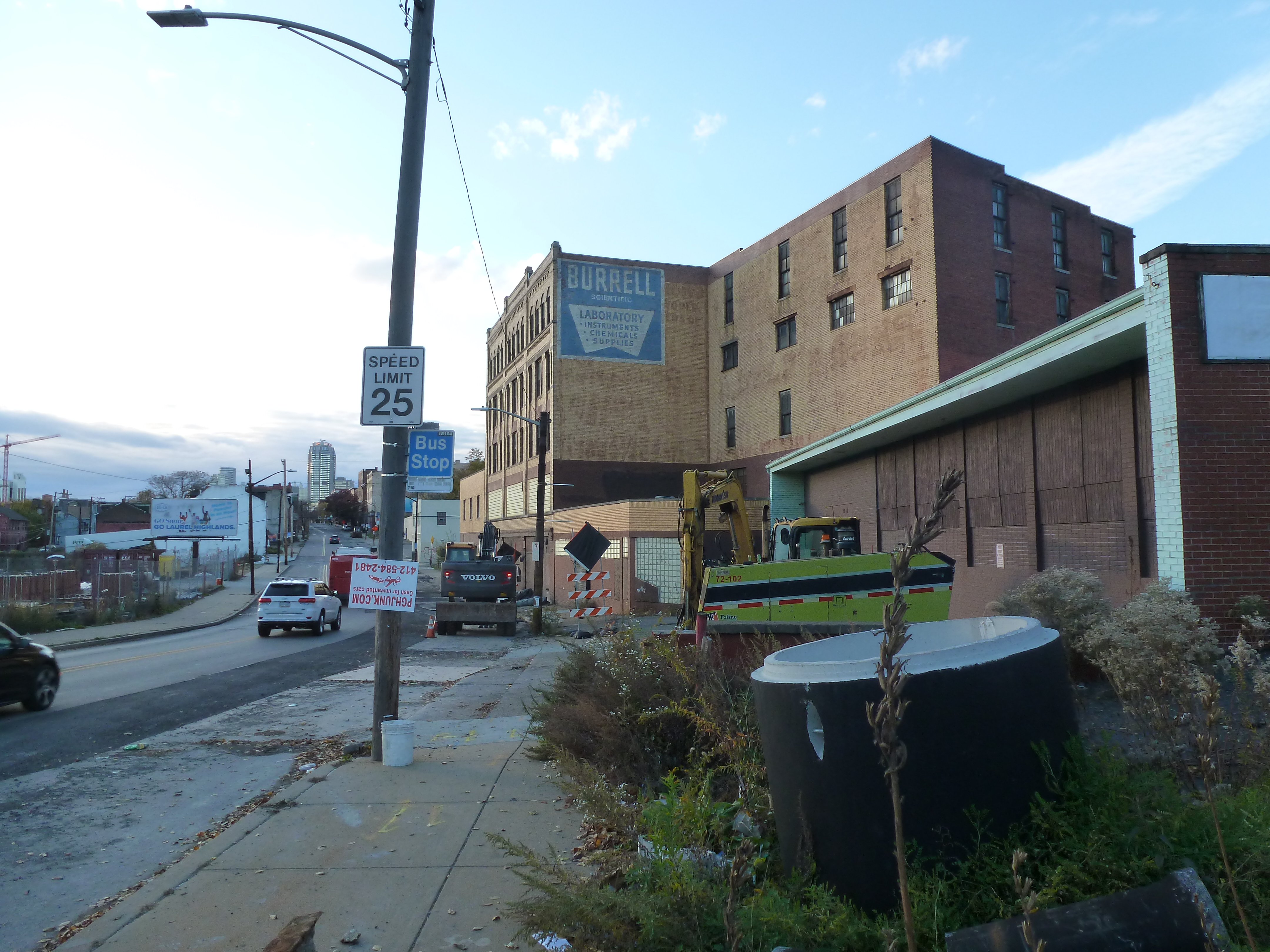There’s been a lot of development in Uptown since the last on-the-ground photographs from December 2021. Several projects that were in progress at that time have since been completed (or at least appear completed) including the UPMC Mercy Pavilion for the new vision rehabilitation center. Many more projects have broken ground, including one near the Birmingham Bridge on a vacant lot that has an extreme grade change. The near cliff that ran through the middle of this site made me guess that it would take longer to develop that property than the vacant building across the street with the Burrell sign painted on the side. This suggests that it may be easier to develop a environmentally challenged site than to reuse an existing building – which is a disturbing thought.