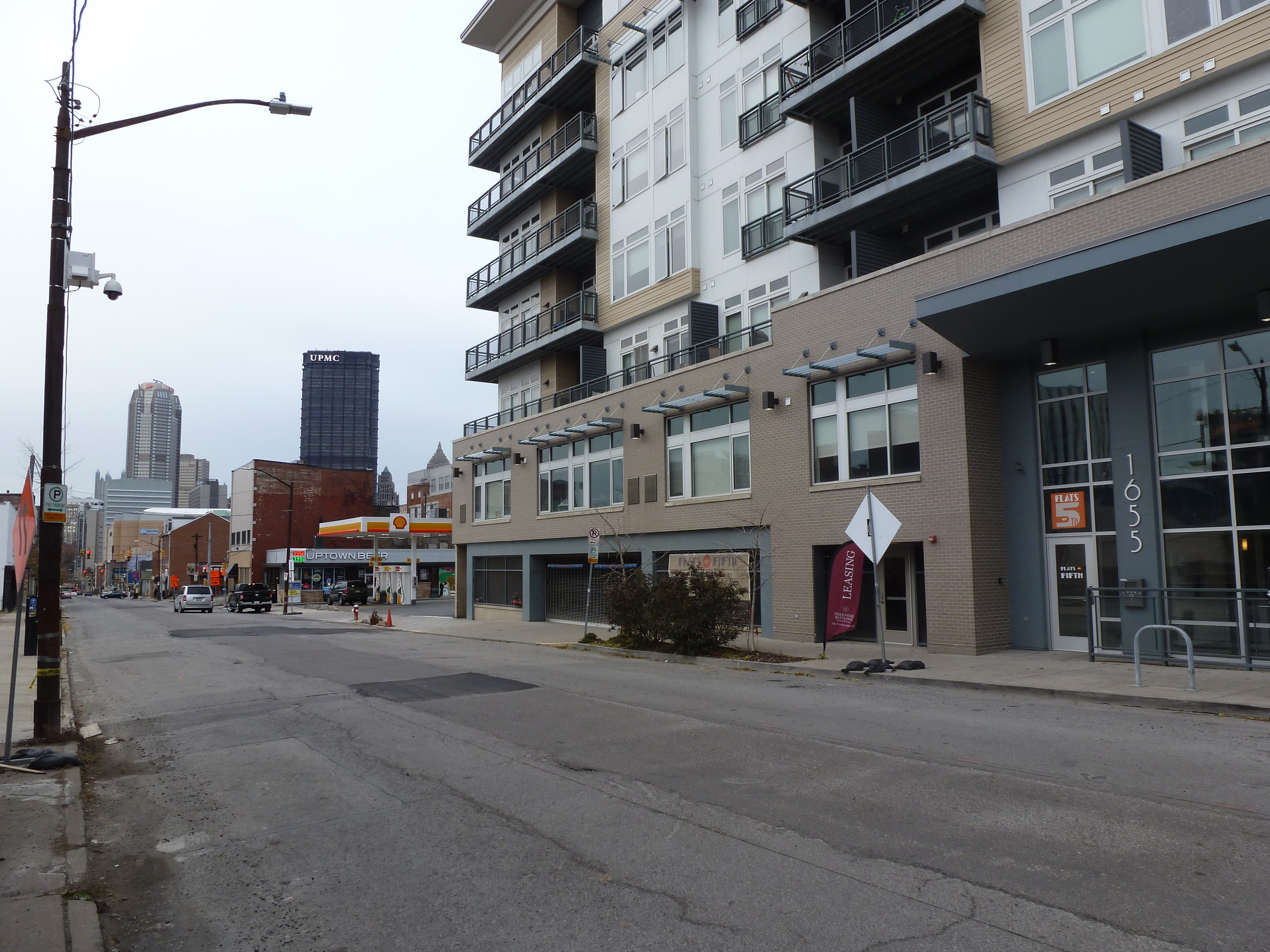 In recent years, new buildings started springing up here and there. Some of these new projects are the work of the two institutions in the neighborhood: UPMC Mercy Hospital and Duquesne University. Others are the work of a variety of commercial and residential developers. Two reasons for this recent investment are the proposed Bus Rapid Transit system, which will eventually run through the neighborhood, and the in-progress redevelopment of the Lower Hill, an adjacent neighborhood.