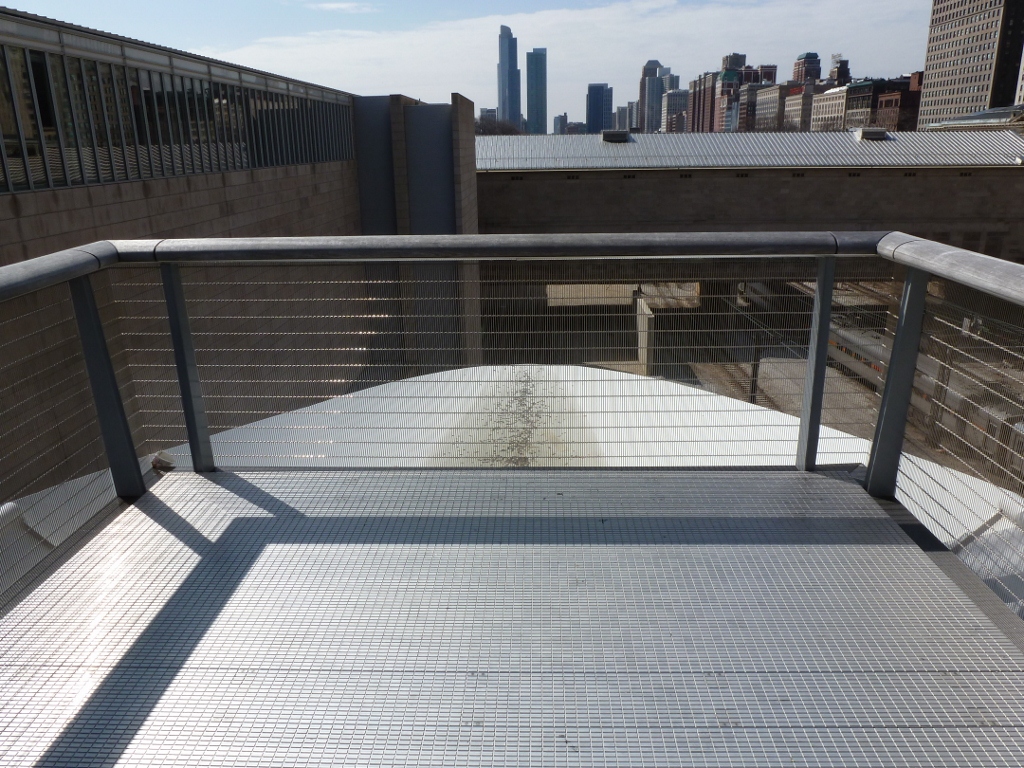 There are two pedestrian bridges connecting to Millennium Park in Chicago. The first I encountered was the BP Bridge. I admired the undulating silver sculpture above as I walked past and was thrilled to discover it was a pedestrian bridge. My excited was quickly crushed as the bridge was closed to traffic due to construction at the other end. I realized that I have become quite addicted to bridge-walking. I was on my way to see The Bean before renting a bike to ride along the lake, when seeing this bridge completely sidetracked me. I had a desperate urge to walk a bridge. Fortunately, there was another pedestrian bridge nearby and while it was not nearly as enticing, it had some interesting parts.