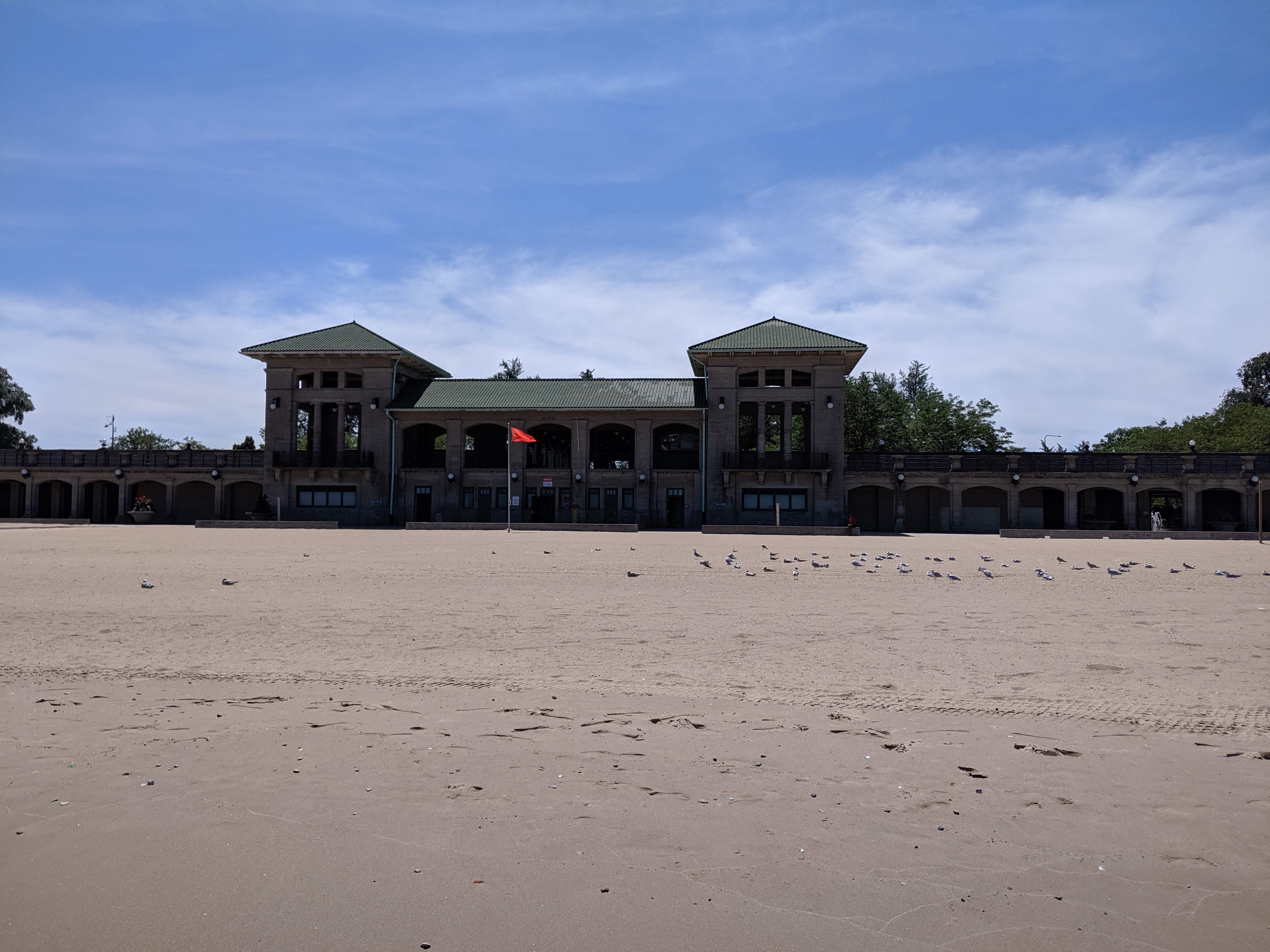 While mounting frustration had turned me back from the lake in Grant Park, the ease of following Jackson Park’s meandering trail turned me away from my original goal to add a stop at the lake beach. The beach house suggested days of better maintenance and greater usage, but the beach and adjoining greenspace appeared to be a pleasant amenity for local traffic.* While tourists may have found their way there in 1893, I seemed to be the only one when I visited.