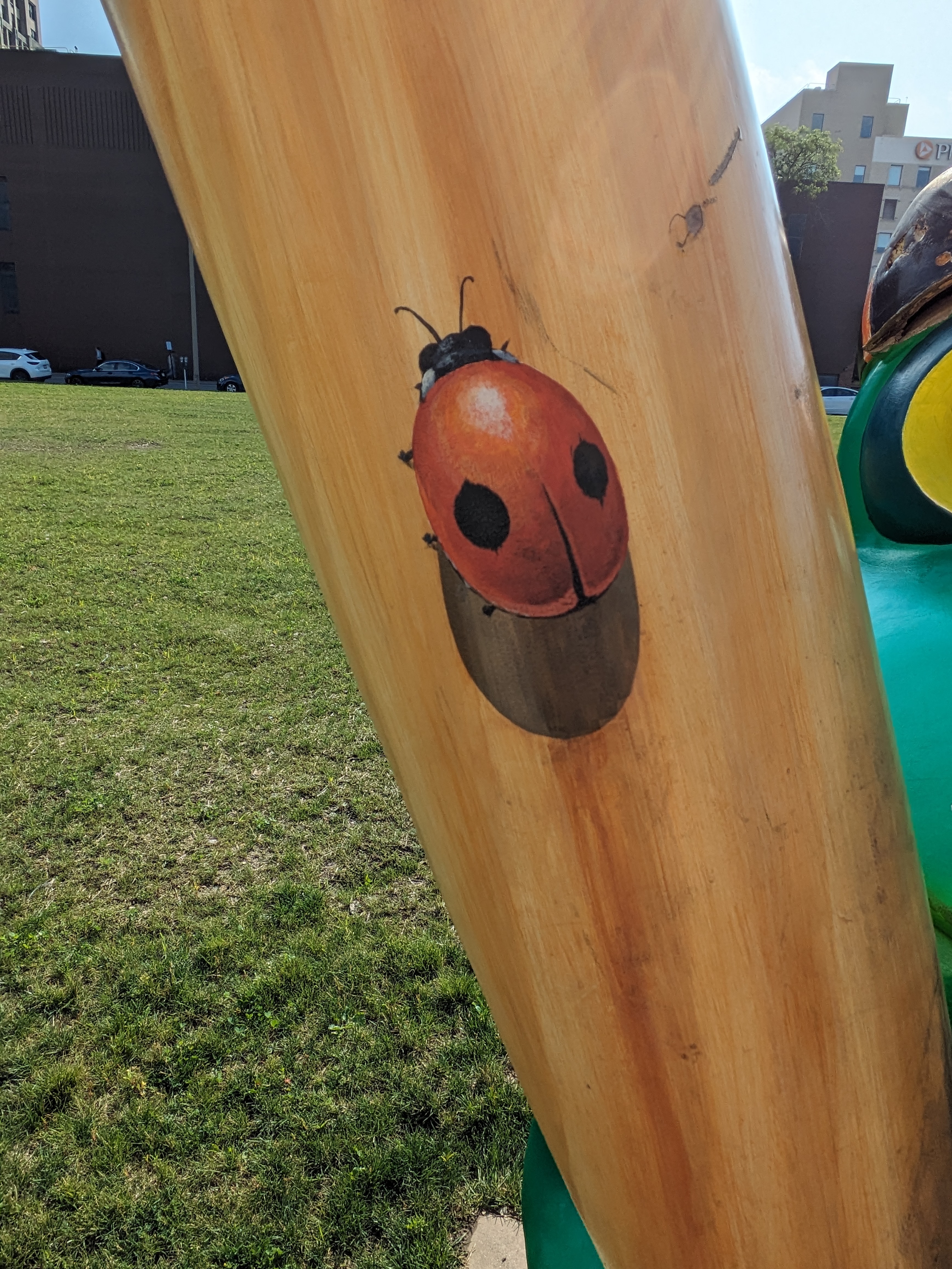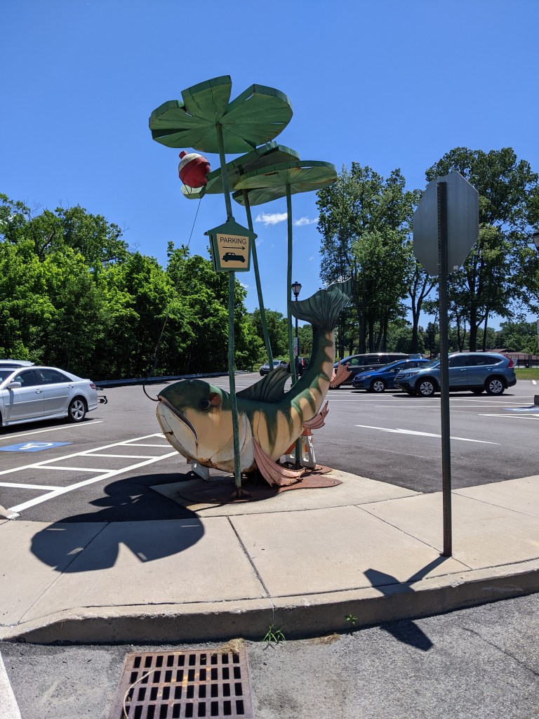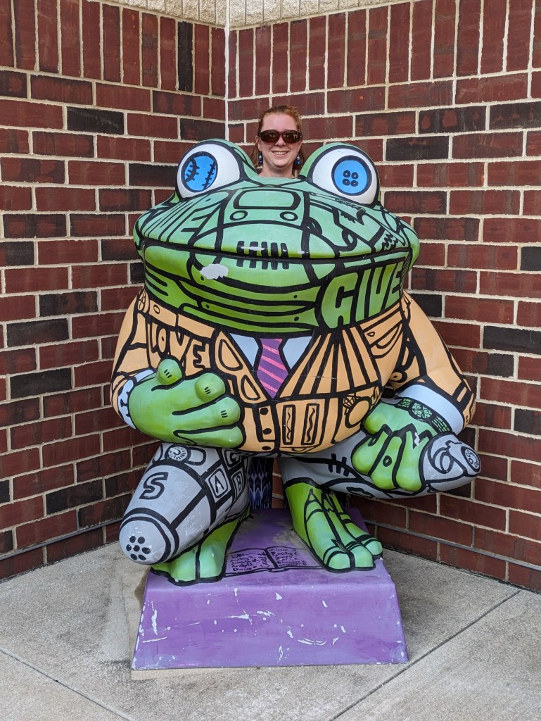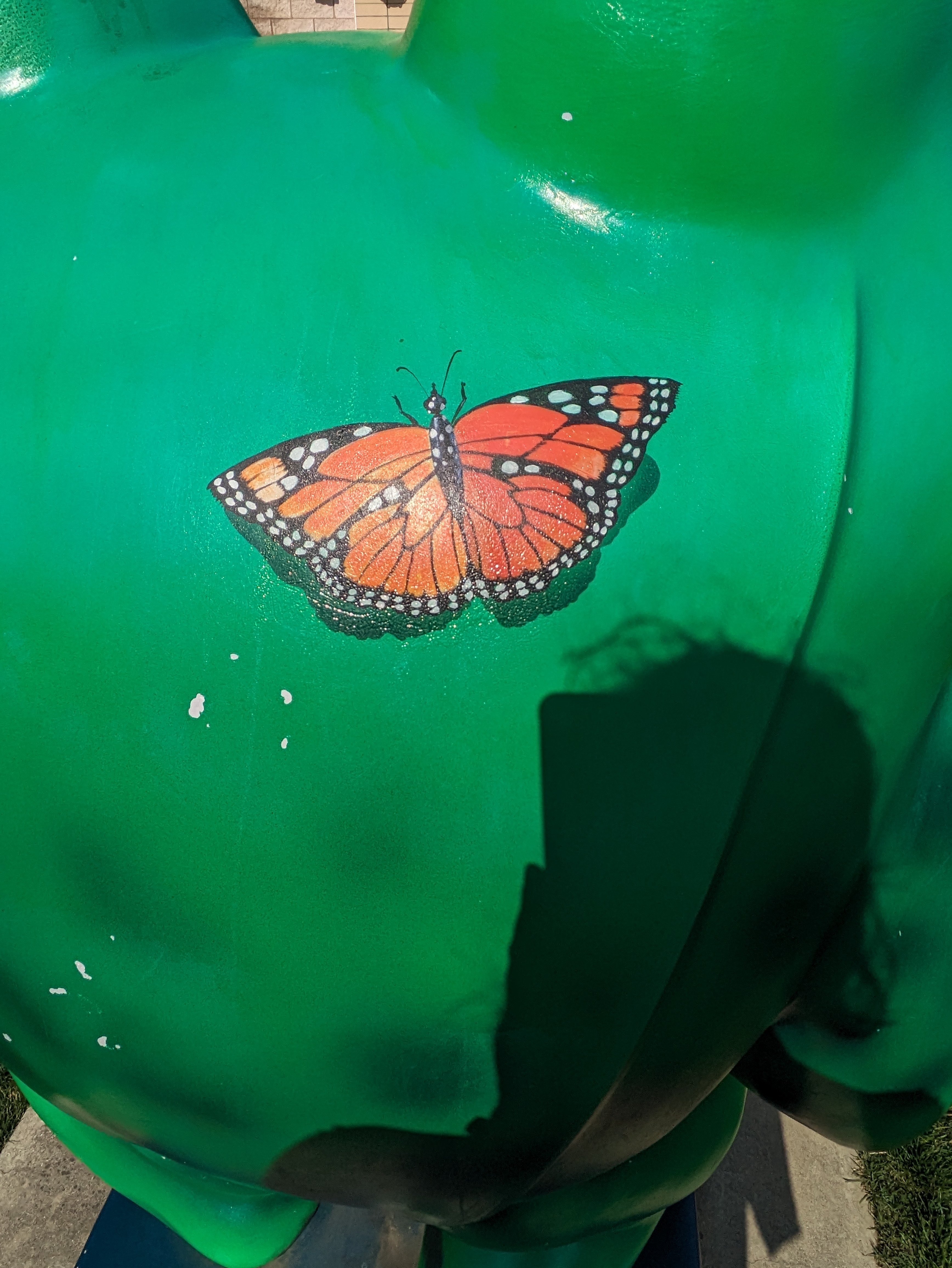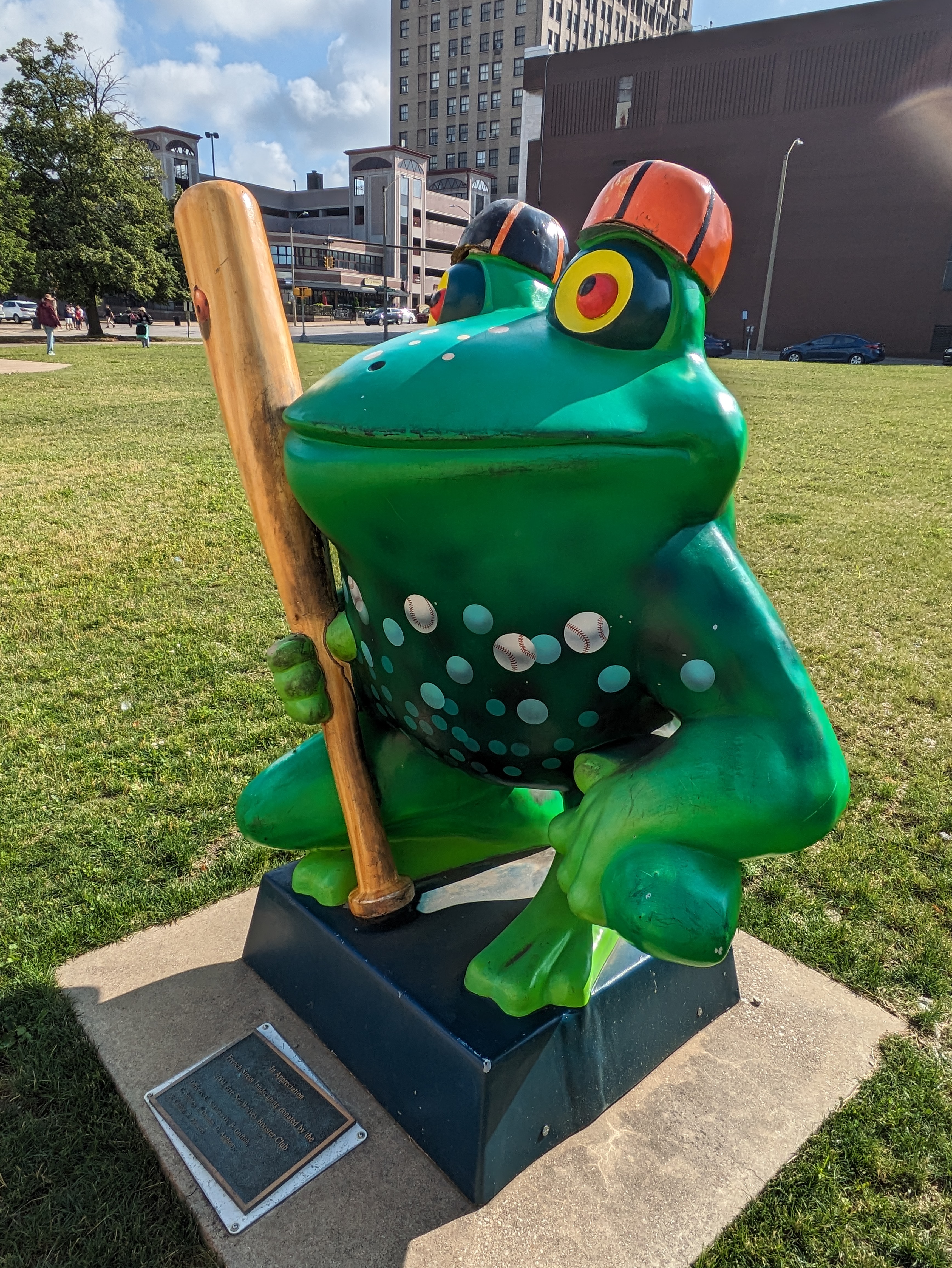 LeapFrog! was a fundraiser in Erie, PA, in 2004. “Infinity Frogs” by Tom Tucker was beyond our walkshed when Shelly and I were searching for frogs in 2023, but with Amy H.’s map of Erie’s frogs we were able to drive directly there.