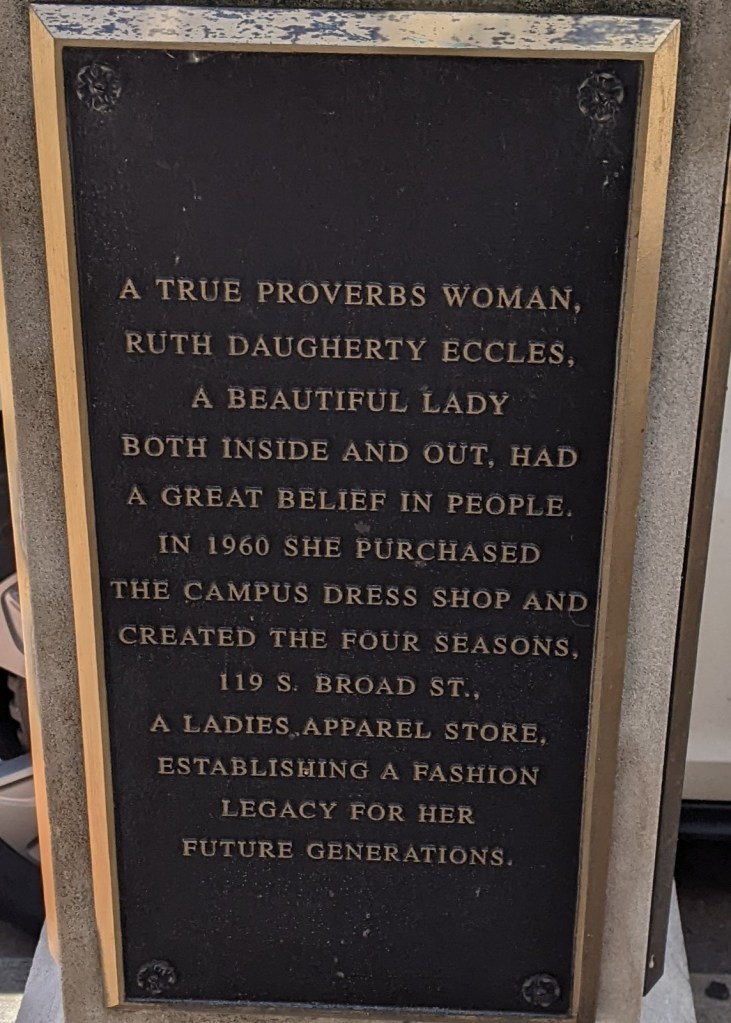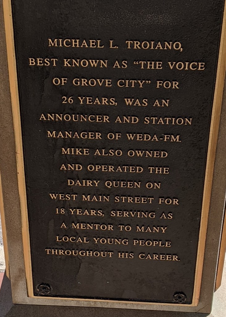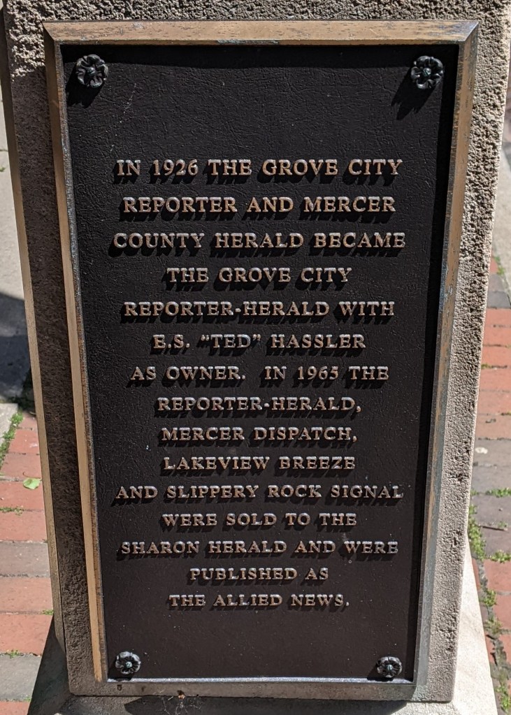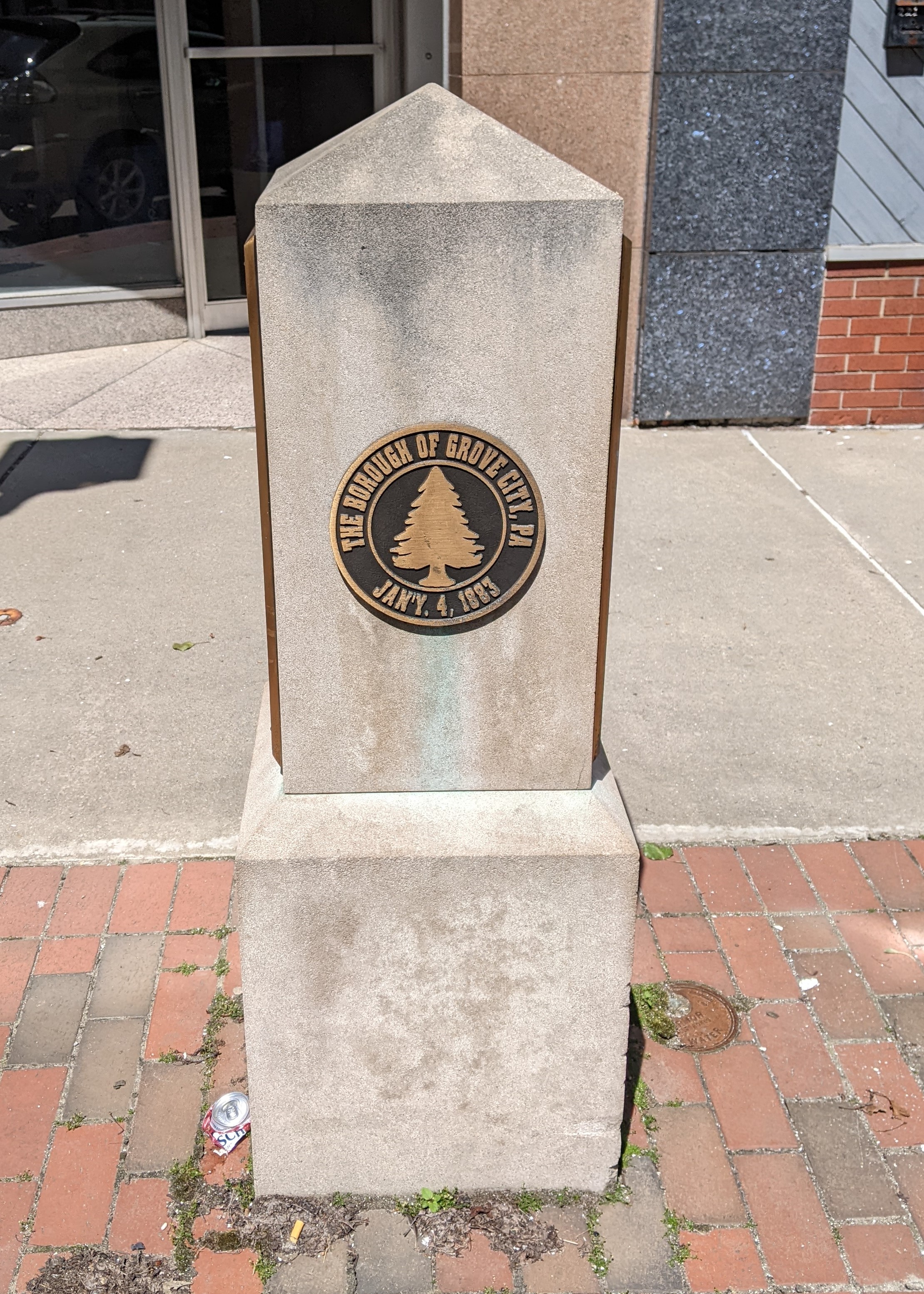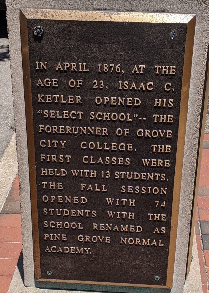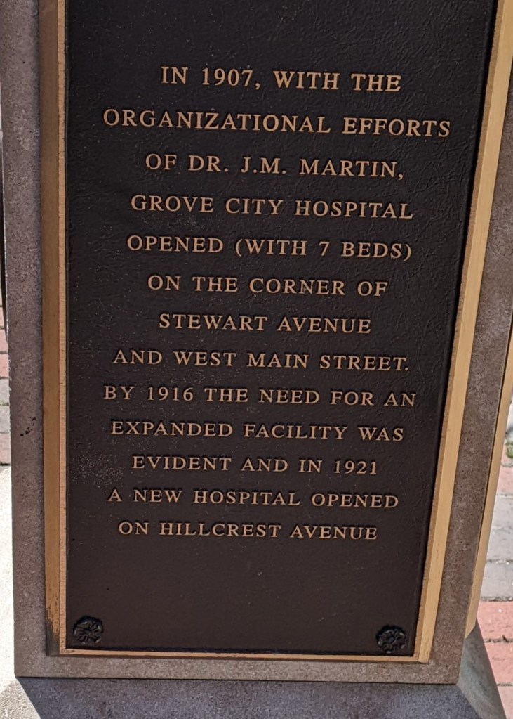 I didn’t have to go far to learn more about Grove City to flesh out the observations I made while walking the bridges. The Borough helpfully installed history markers along the historic business core of South Broad Street. I photographed 33 of the plaques, which I think is all, for anyone interested in virtually visiting these history markers. Of course, these could also be used in the debate over art vs. sign as they also fall into the nuanced mess of the grey area.