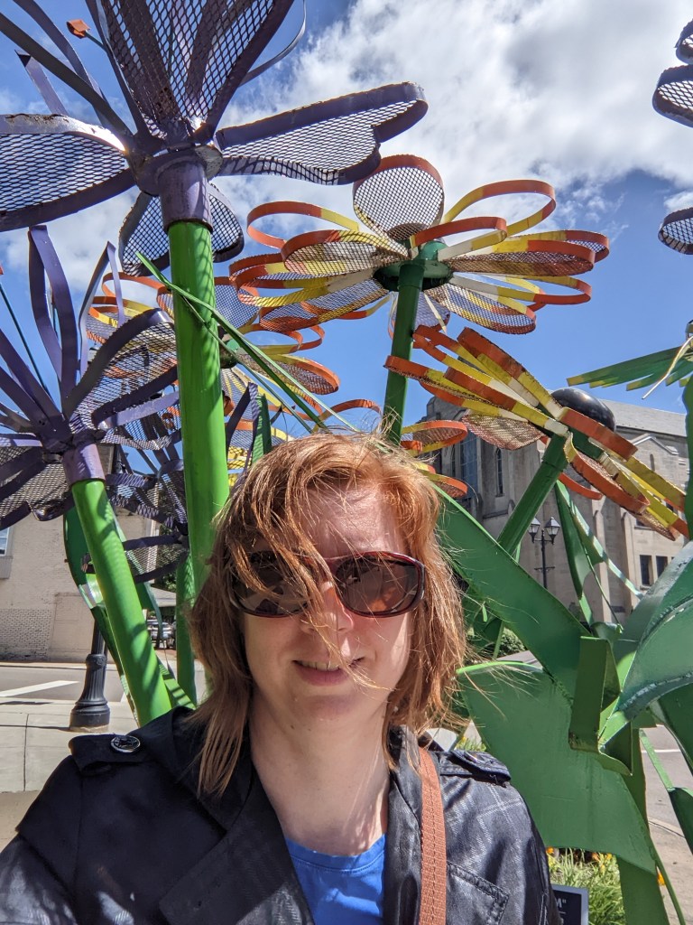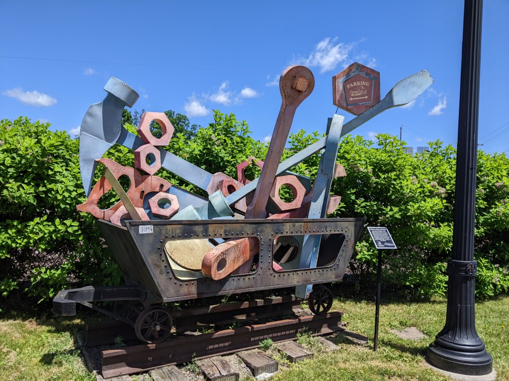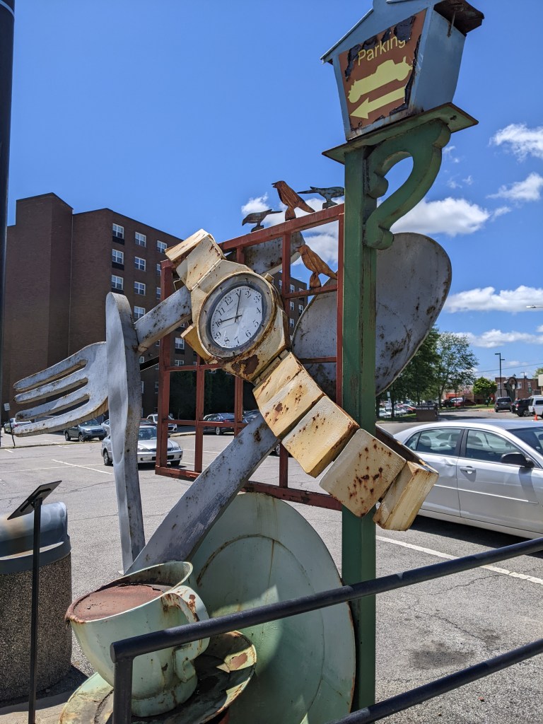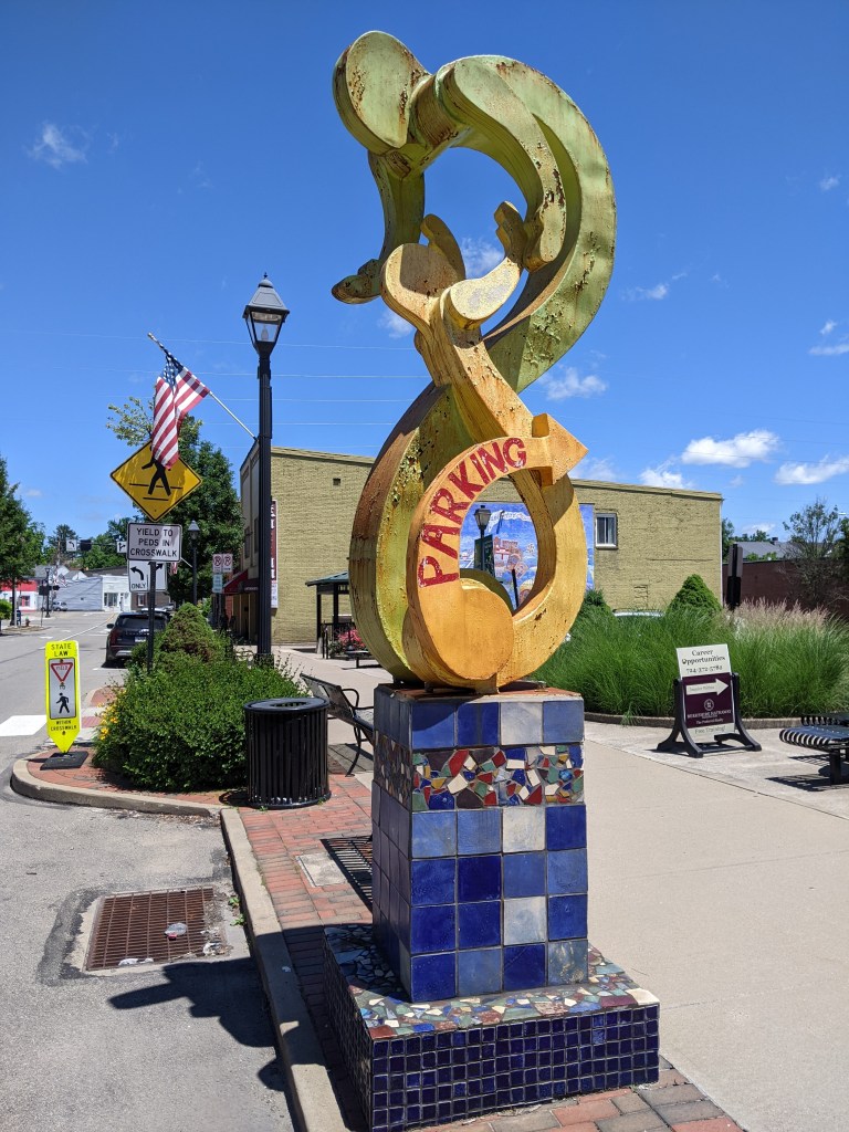 If you are a frequent visitor to urbantraipsing, you know I don’t typically take selfies. However, I did with the first parking sculpture I encountered in Grove City to provide a sense of scale. These are substantial structures. I am standing in the selfie…and, for those who don’t know me in person, I am 6 feet tall.