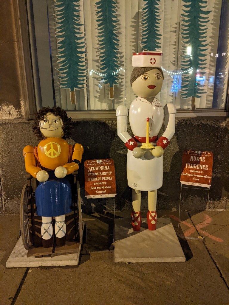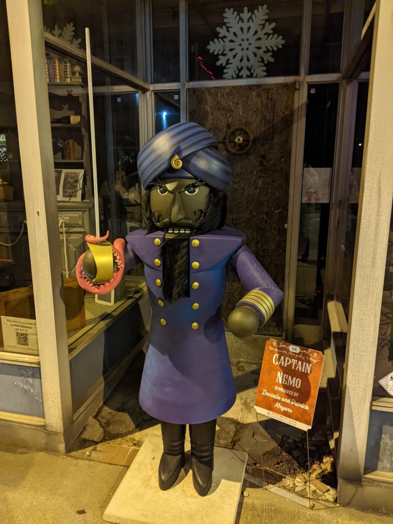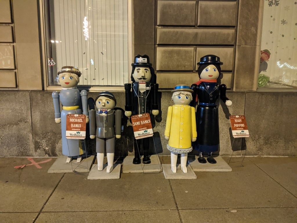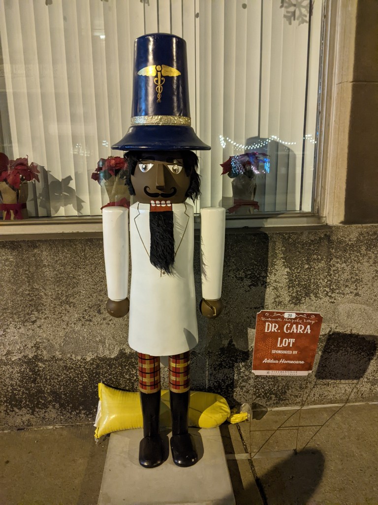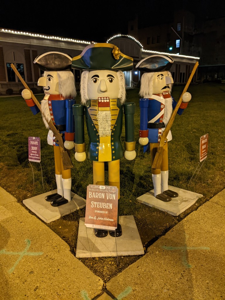 This season is the 10th anniversary of the Steubenville1 Nutcracker Village. Each year, the town of Steubenville, OH, sets out a growing number of human-sized nutcrackers each individually decorated. While they are advertised as 6-feet tall, there is some variation in their heights. A few, including “Santa Claus” and “Henry Harley Hank,” tower over the others. A few, including “Jane Banks” and “Michael Banks,” who I’m pretty sure are standing outside a bank, are eye-to-eye for children.