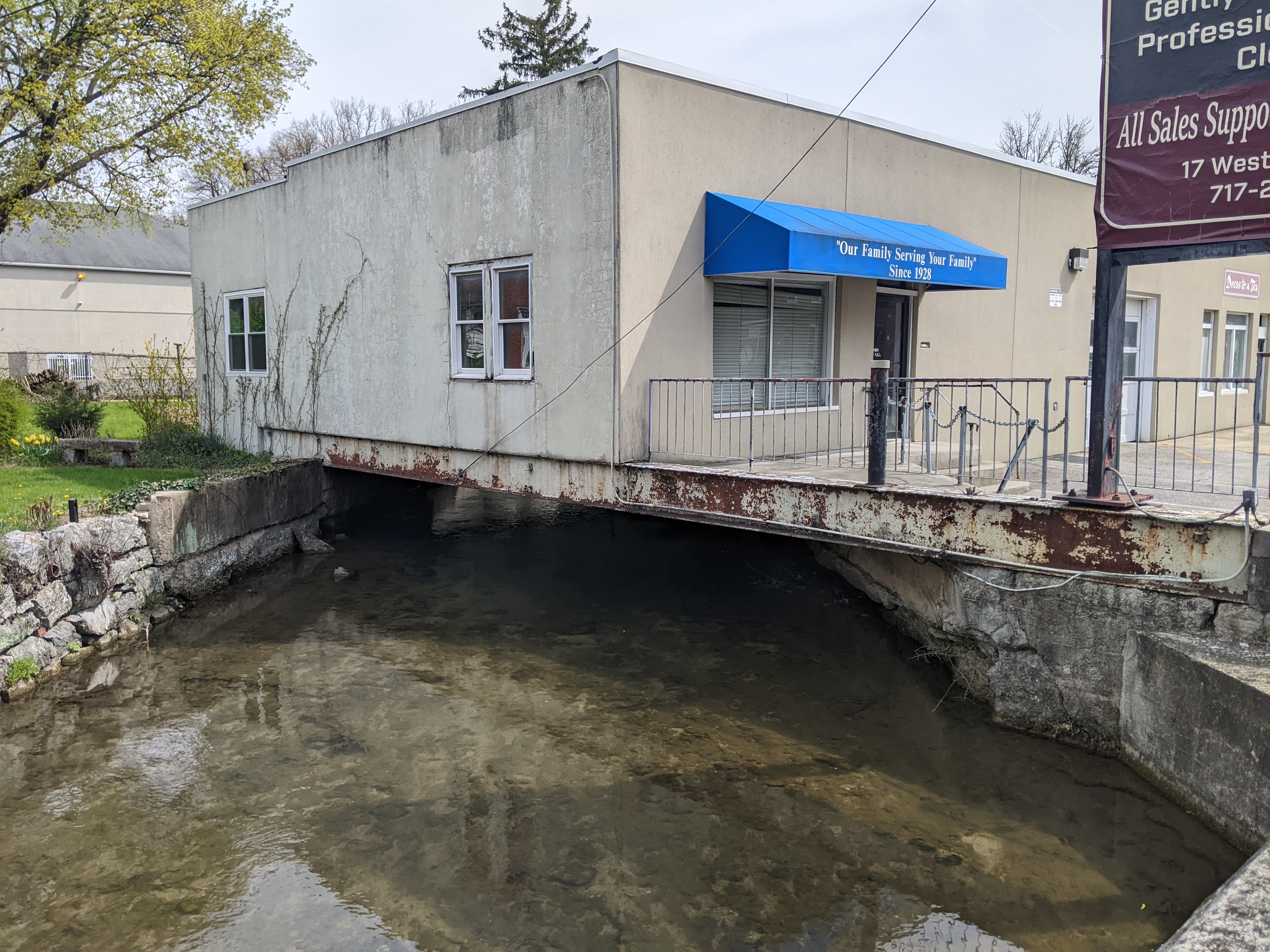 This question is a continuation of the one inspired by Millvale. When I shared my thoughts on the building/bridge and backyard/bridge in that town, I focused on the fact that those bridges were hidden from sight and are likely an important factor contributing to the town’s flooding issues.