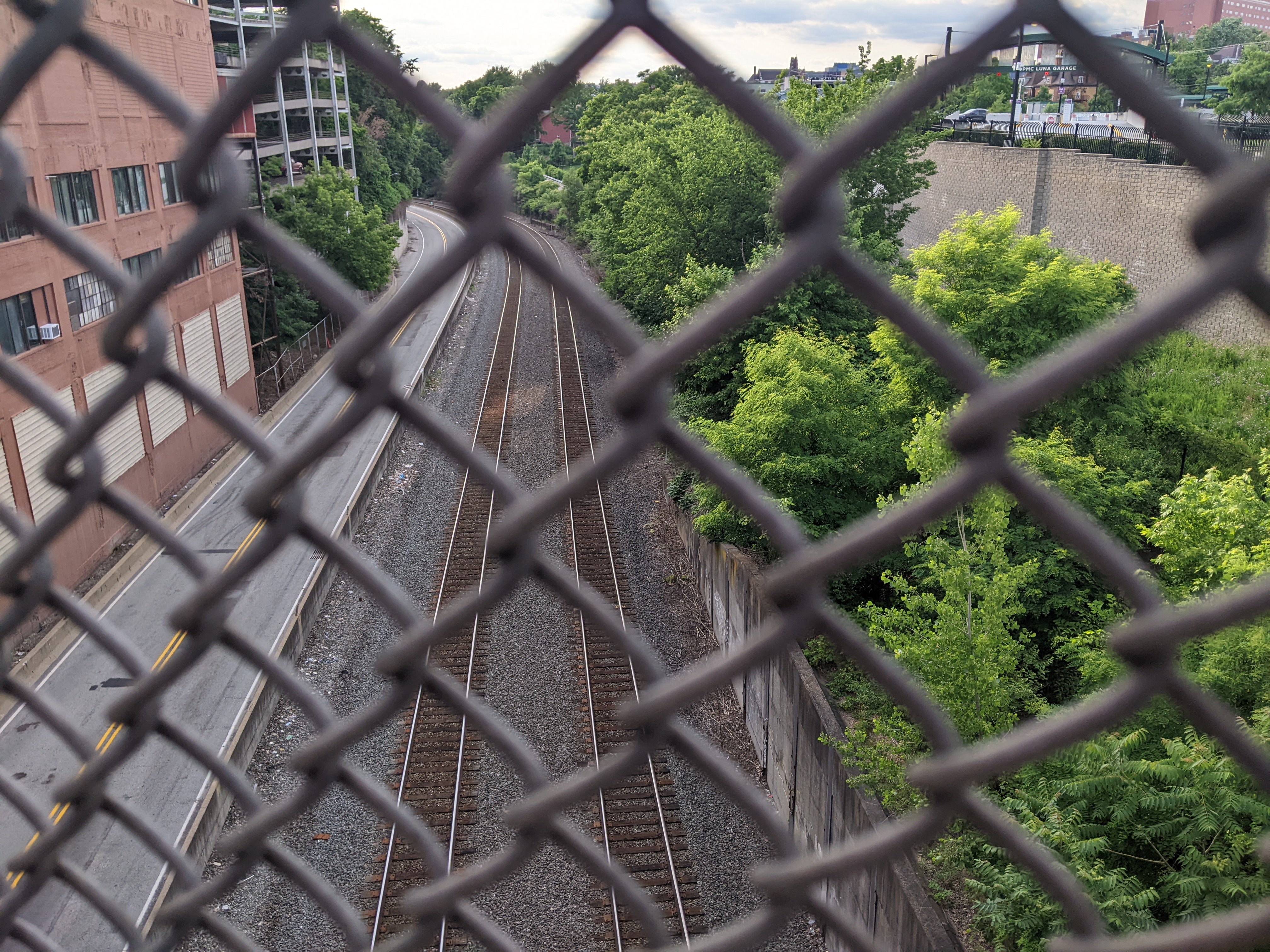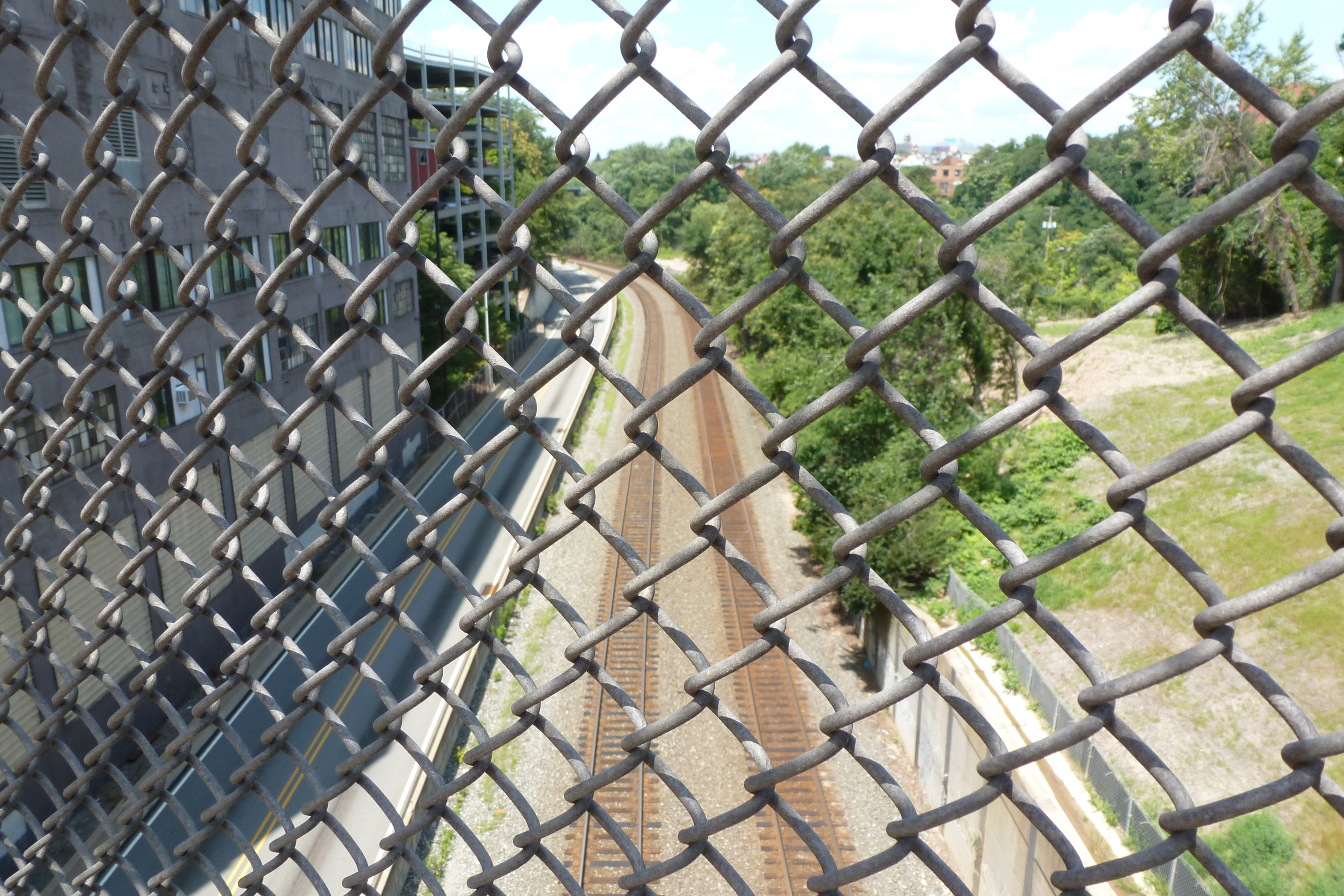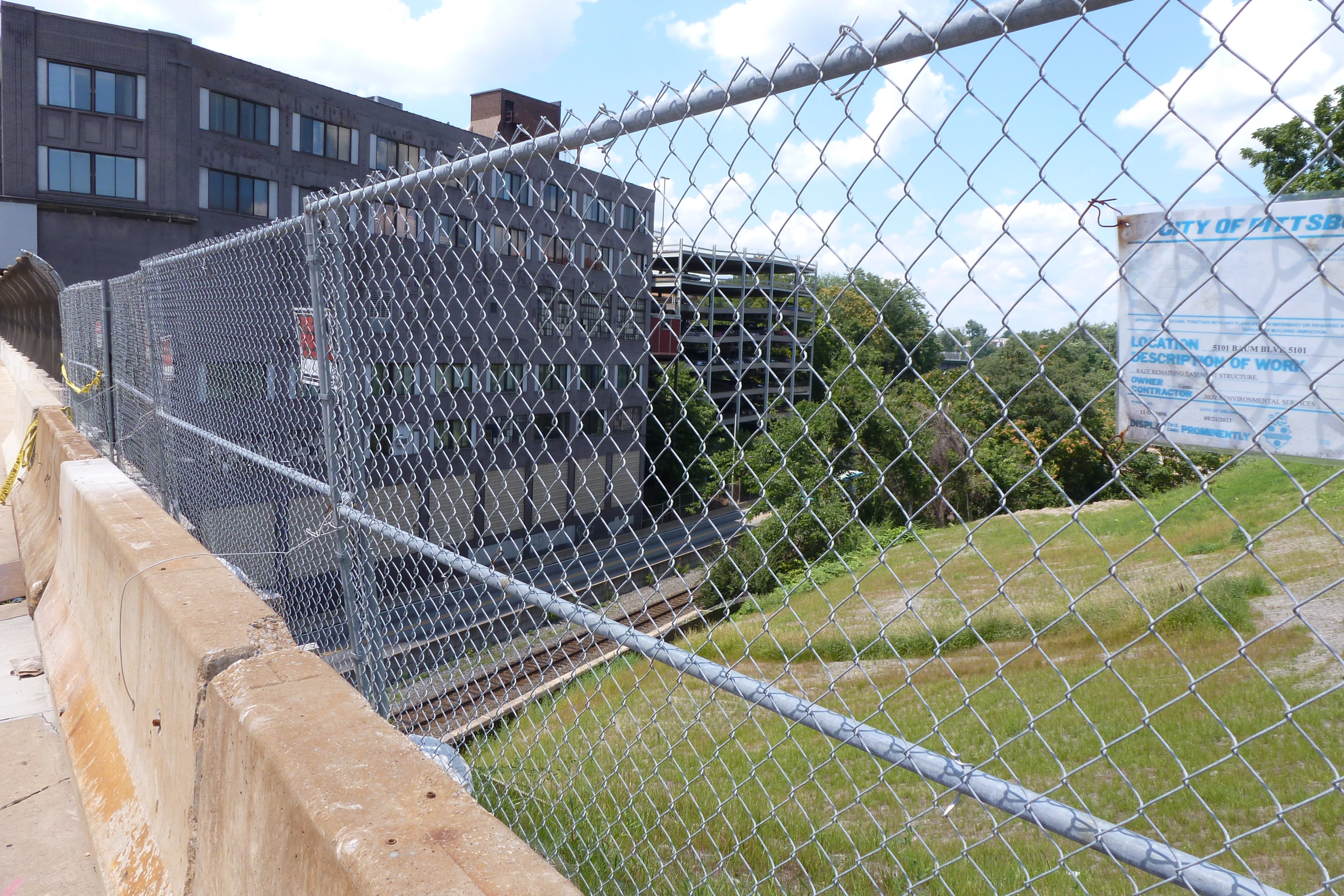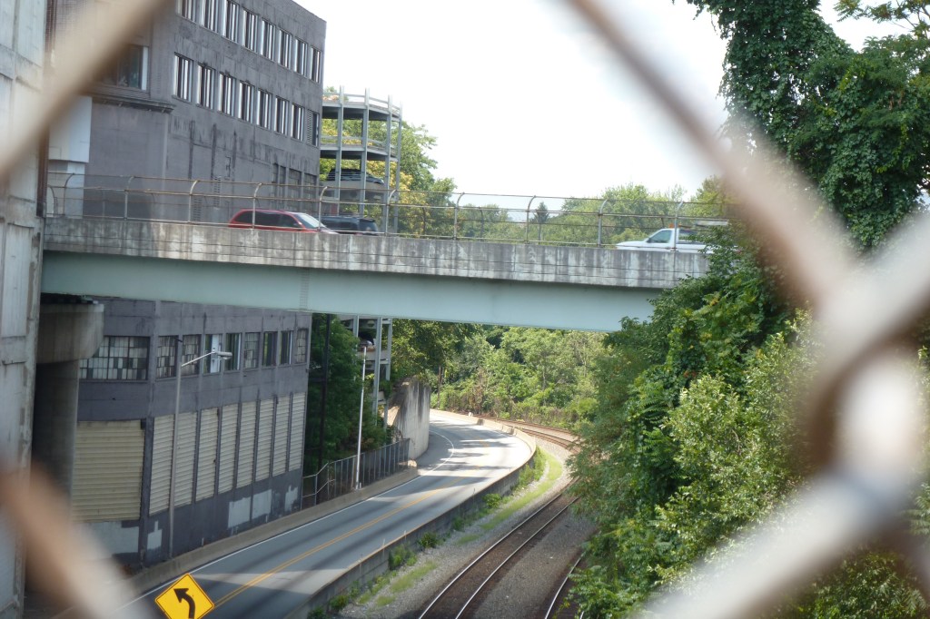 The next look back at the bridges I first walked 10 years ago moves “downstream” or toward downtown on the former riverbed now east busway and railroad route. From the East Liberty Pedestrian Bridge featured in February, the inbound buses and trains pass underneath three bridges in Pittsburgh’s Shadyside neighborhood (the South Negley Avenue and South Aiken Avenue Bridges and the Graham Street Pedestrian Bridge) before reaching the approximately parallel Centre Avenue and Baum Boulevard Bridges. The bus station next to the Negley Avenue bridge is currently under reconstruction, otherwise the three bridges and their surroundings in Shadyside are relatively unchanged – except perhaps for some deterioration due to long deferred maintenance. On the other hand, the surroundings of the Centre Avenue and Baum Boulevard Bridges have seen a couple new developments since I first walked these bridges.