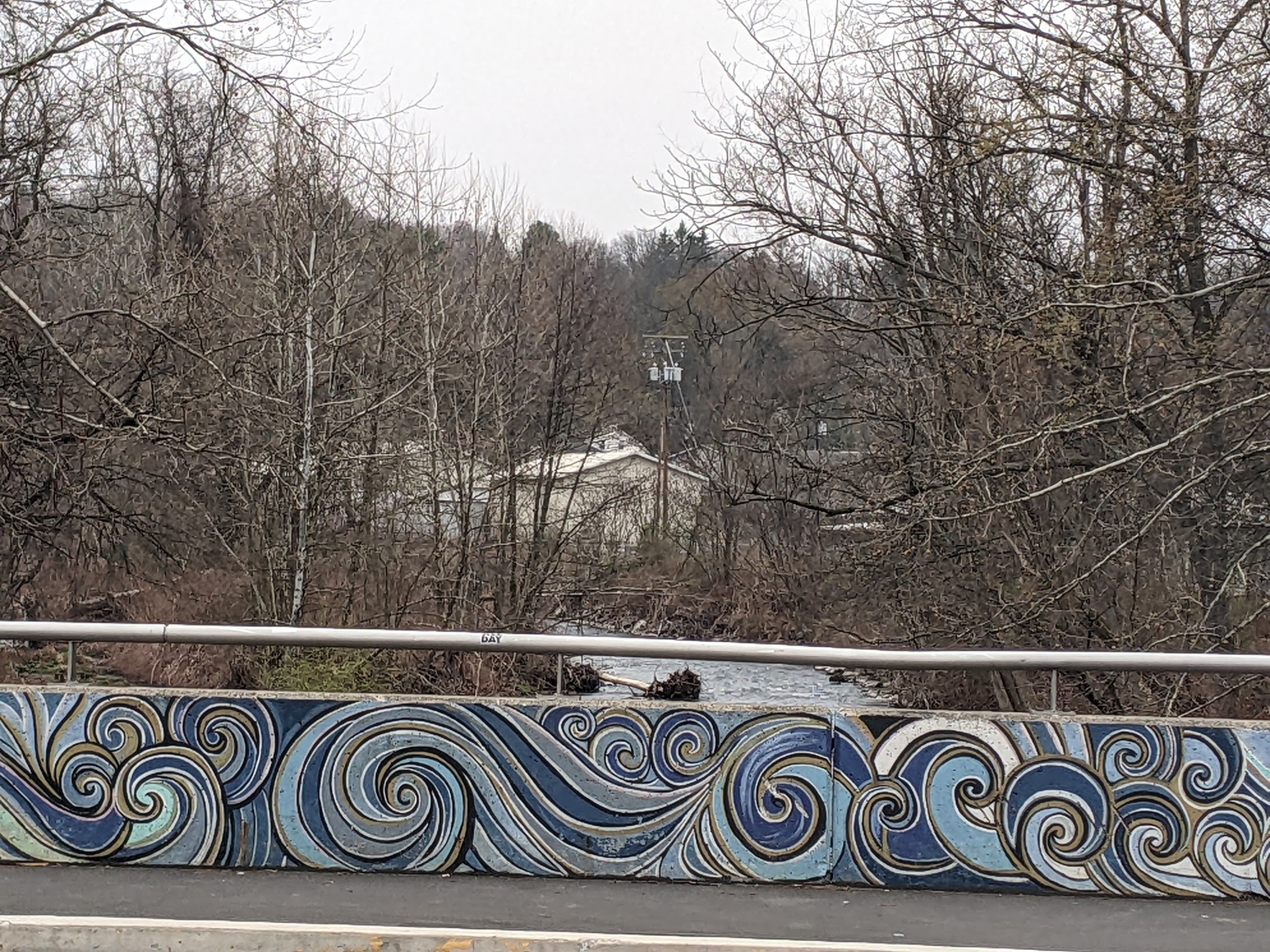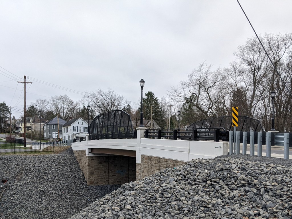 When I arrived in East Stroudsburg, the blood-red, rounded through-truss bridge was no longer there (officially, it was a Warren pony truss style). This bridge had been an important landmark for me as a child, probably because its design was distinctive. It made me smile when I saw the new bridge had paid homage to the shape of the former truss. While the change of color and style of the bridge was significant, I felt a sense of comfort at the continuity created by the way the new design acknowledged the former bridge.